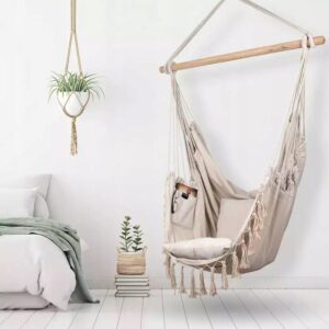 Wiszący Fotel Brazylijski Beżowy + Poduszki