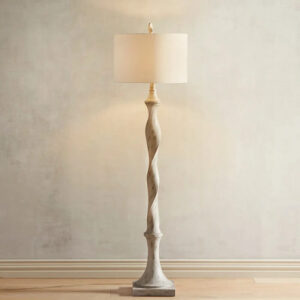 Lampa Podłogowa Drewniana Skręcona Rustykalna