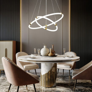 Elegancki Żyrandol do salonu Złote Pierścienie LED