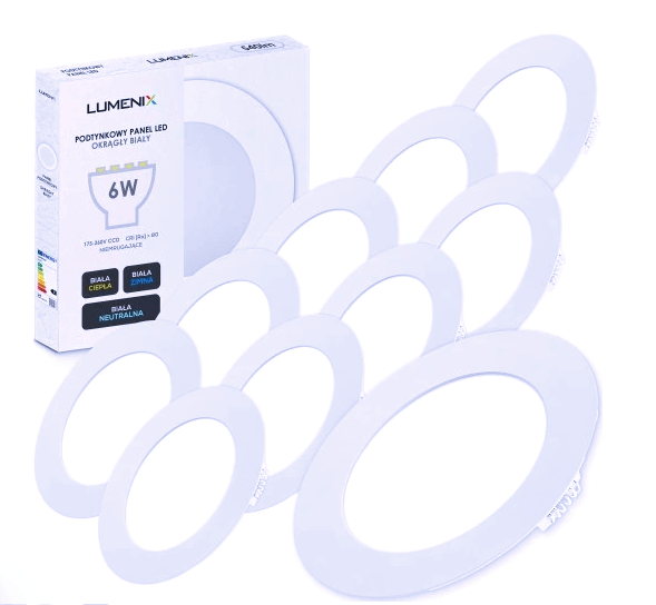 10x Panel Plafon Sufitowy LED Podtynkowy Okrągły 6W 540lm nie mruga CCD SLIM