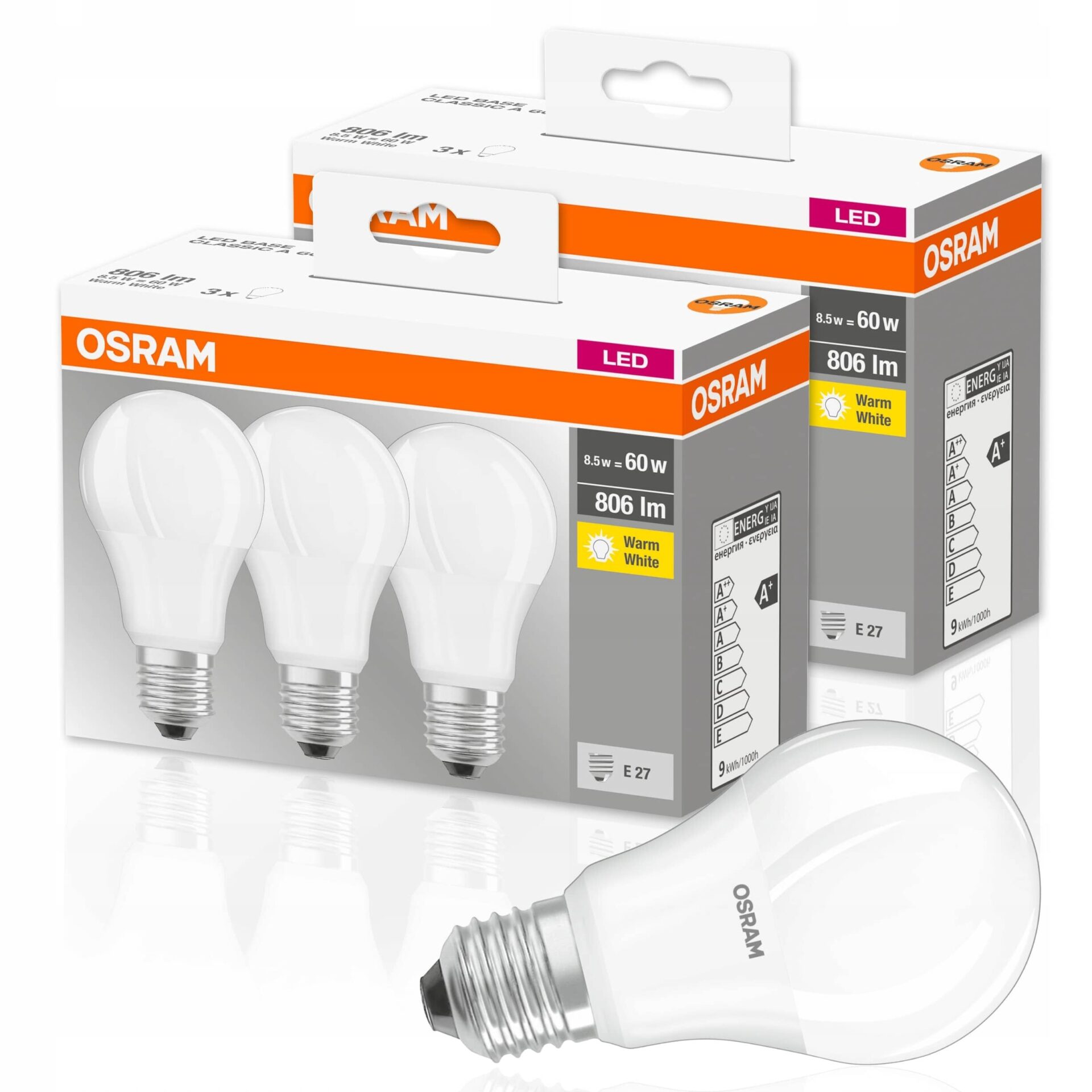Komplet, Zestaw 6x Żarówka LED A60 E27 8,5W = 60W 806lm 2700K – CIEPŁA BARWA ŚWIATŁA OSRAM