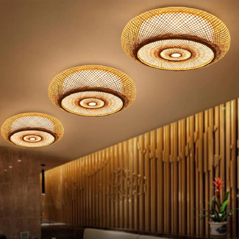 Bambusowa naturalna i stylowa lampa sufitowa Sorel boho idealna do salonu, sypialni, kuchni, korytarza.