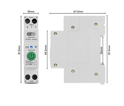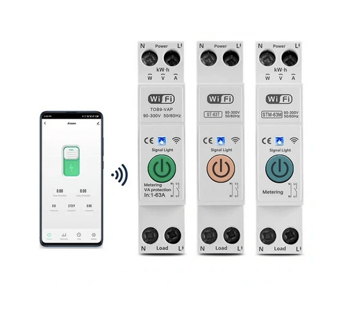 Bezpiecznik WiFi to jednofazowy licznik energii elektrycznej z mocowaniem na szynę DIN.