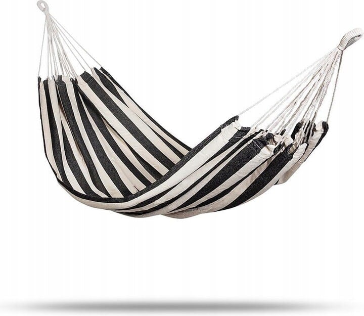 Nowy, wysokiej jakości, wytrzymały hamak wiszący do powieszenia na zewnatrz i wewnątrz. Hamak można zamontować zarówno w ogrodzie, na tarasie, działce, jak i w pomieszczeniach w domu. Jeżeli zawsze marzyłeś o wypoczynku na łonie natury beztrosko leżąc nad ziemią, to ten produkt jest właśnie dla Ciebie.