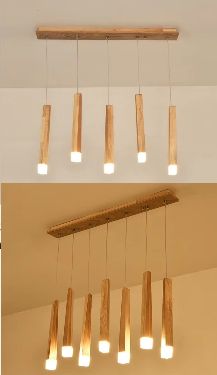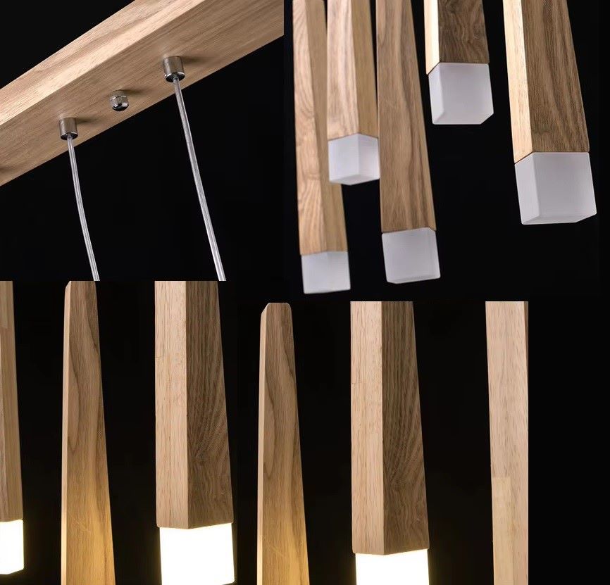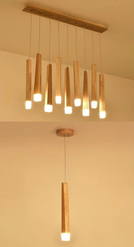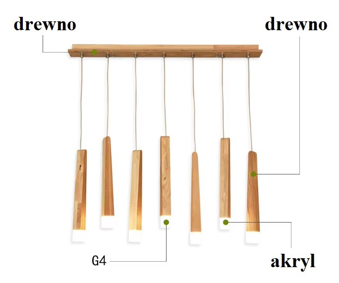 Klasyczna drewniana minimalistyczna lampa wisząca Stick idealna do salonu, jadalni, kuchni.