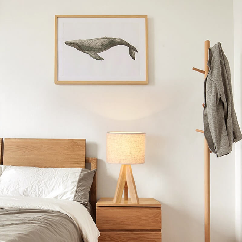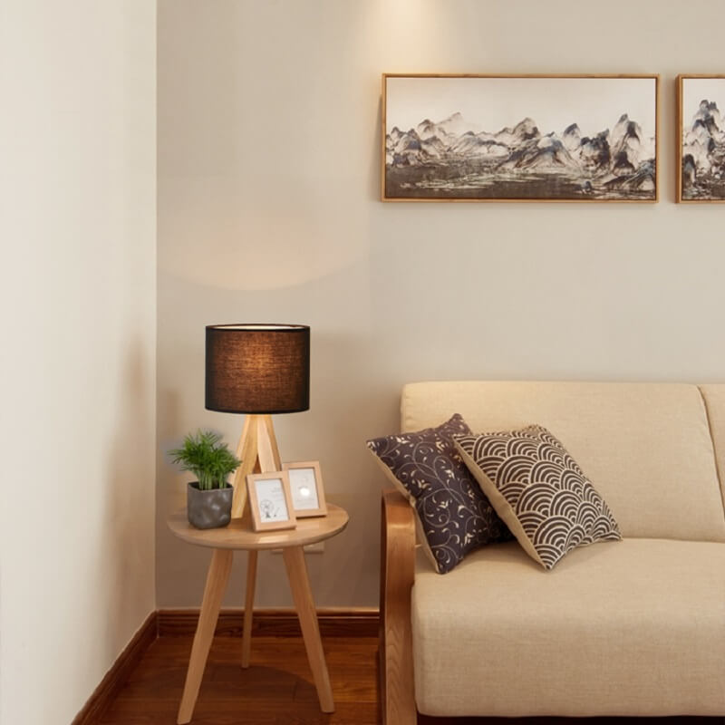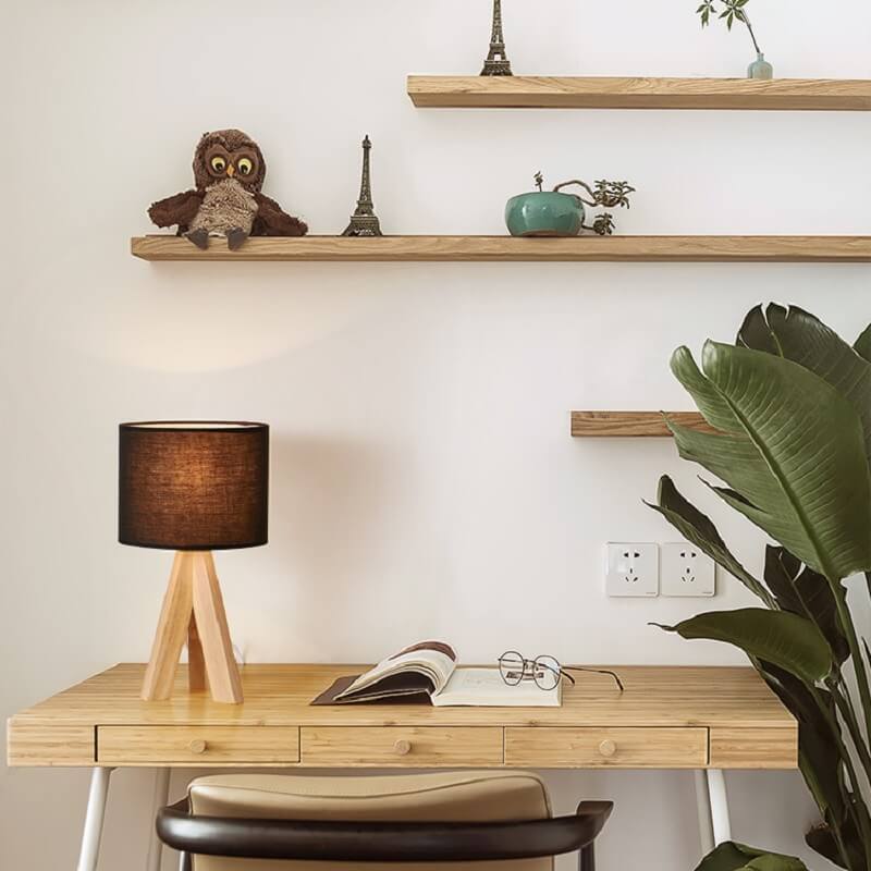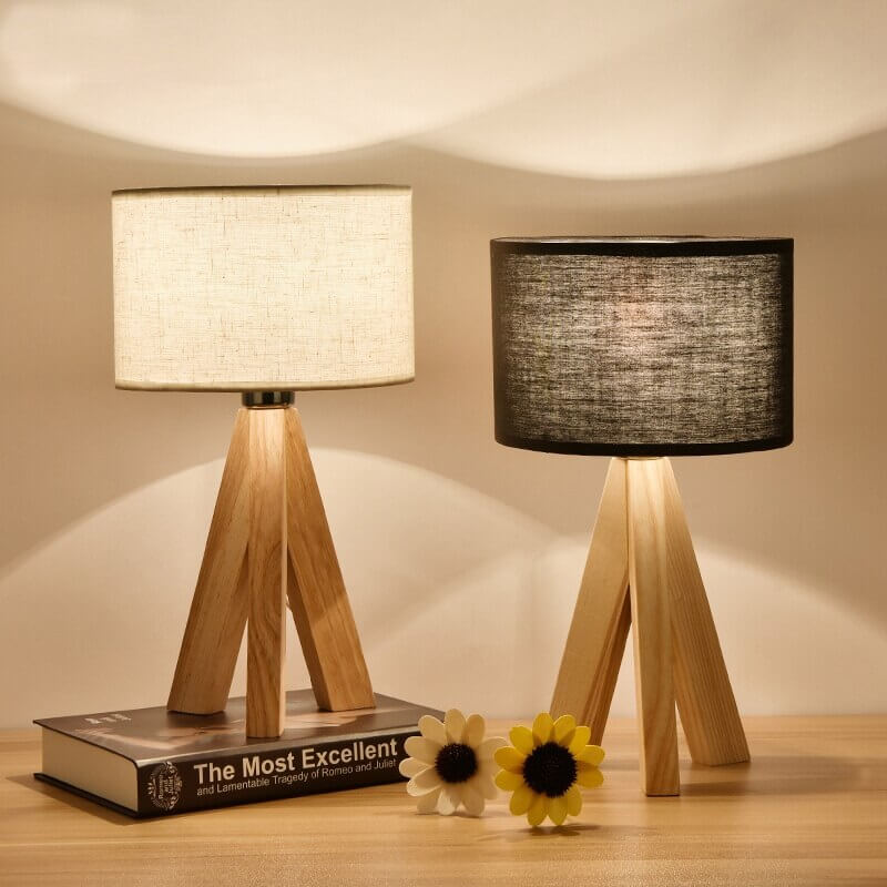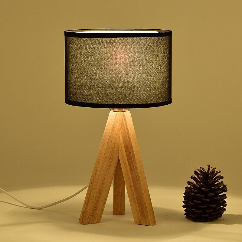 Drewniana minimalistyczna skandynawska lampa stołowa Trójnóg idealna do sypialni, salonu, gabinetu.