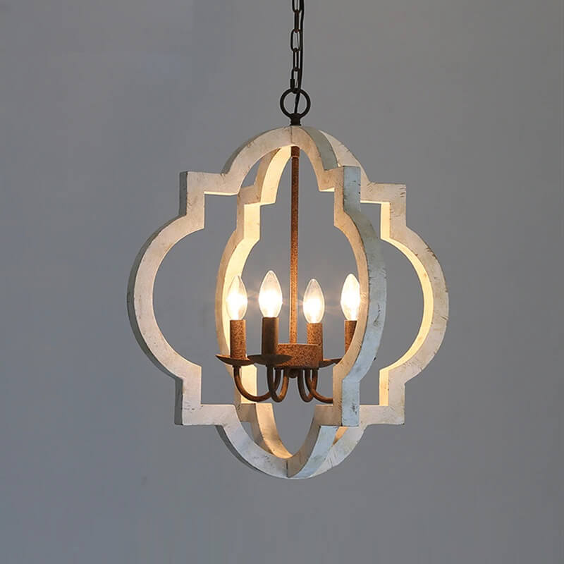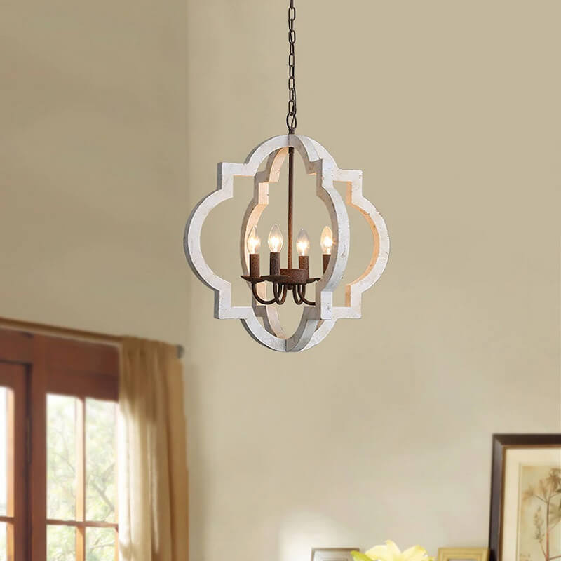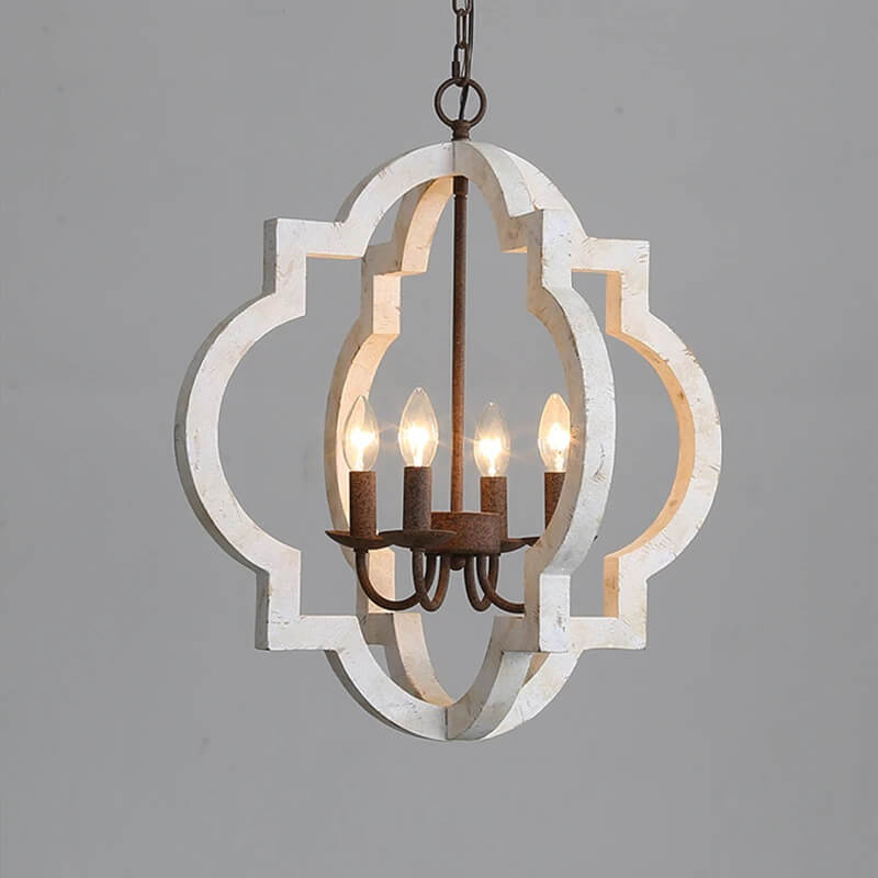 Drewniana rustykalna lampa wisząca Ksana. Żyrandol w kolorze białym i brązowym idealny do kuchni, salonu, jadalni.
