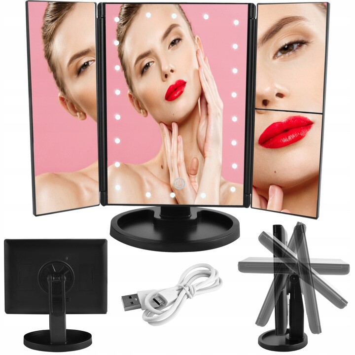 Duże Lusterko LED Kosmetyczne Podświetlane 22LED 2x 3x