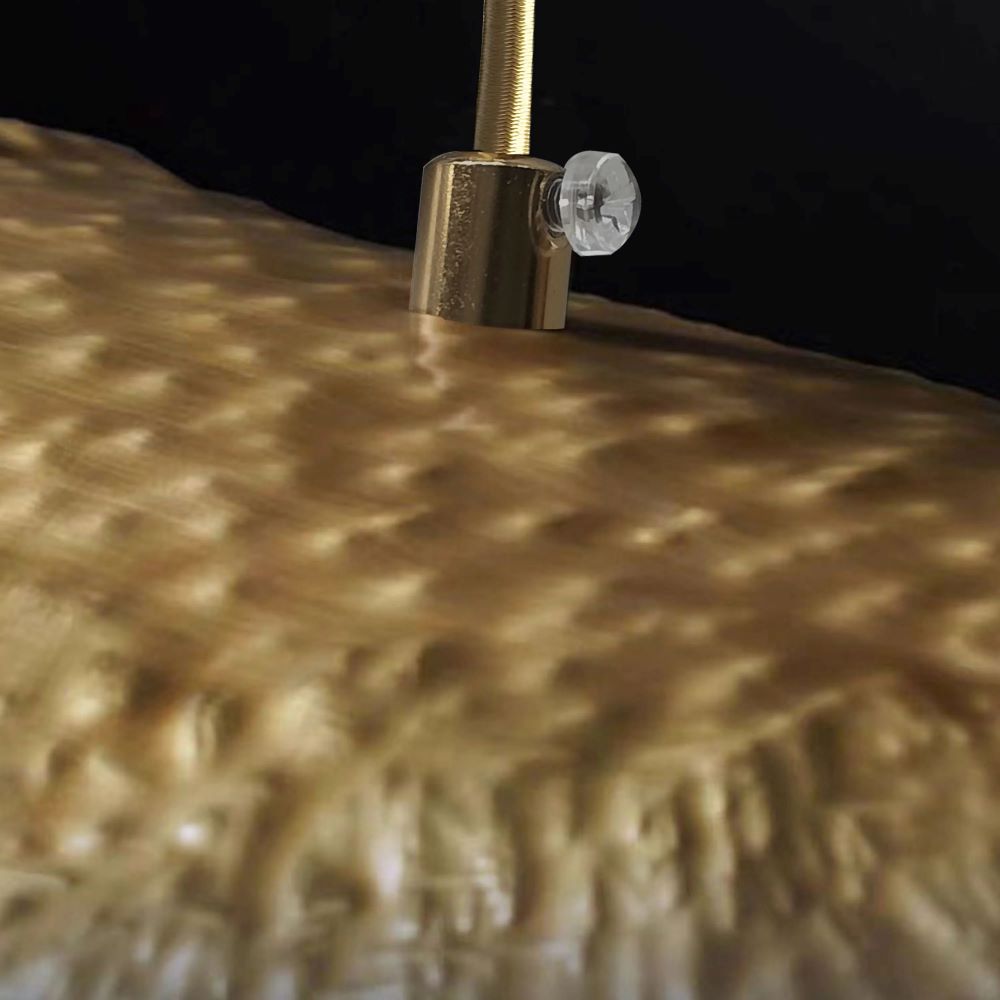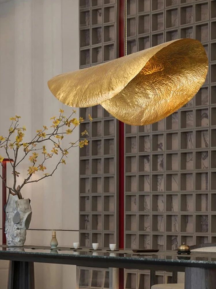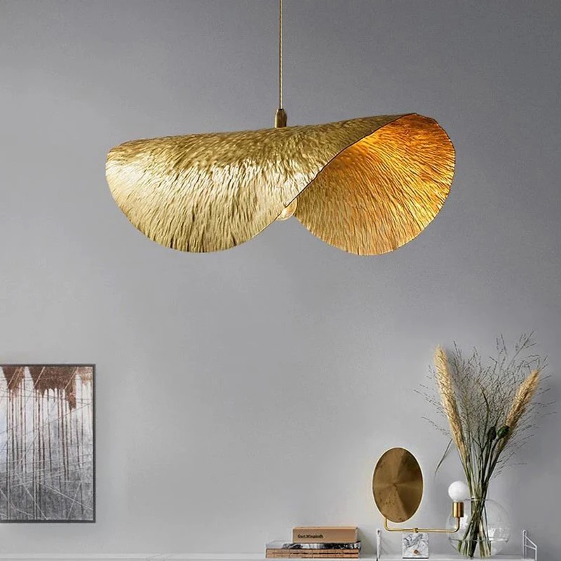 Lampa wisząca Kapello z metalowym złotym kloszem wzbogaci Twoje wnętrza o designerskie oświetlenie centralne. Model ten posiada fantazyjny klosz o futurystycznym, falistym, nieco kosmicznym kształcie, przypominając unoszący się w powietrzu, kapelusz. Złoty klosz i jego wnętrze cudownie rozprasza światło i zapewnia ciepłą, bursztynową poświatę. Lampa wisząca Kapello sprawdzi się jako oświetlenie dodatkowe w aranżacjach nowoczesnych, glamour i innych – eleganckich i nieszablonowych.