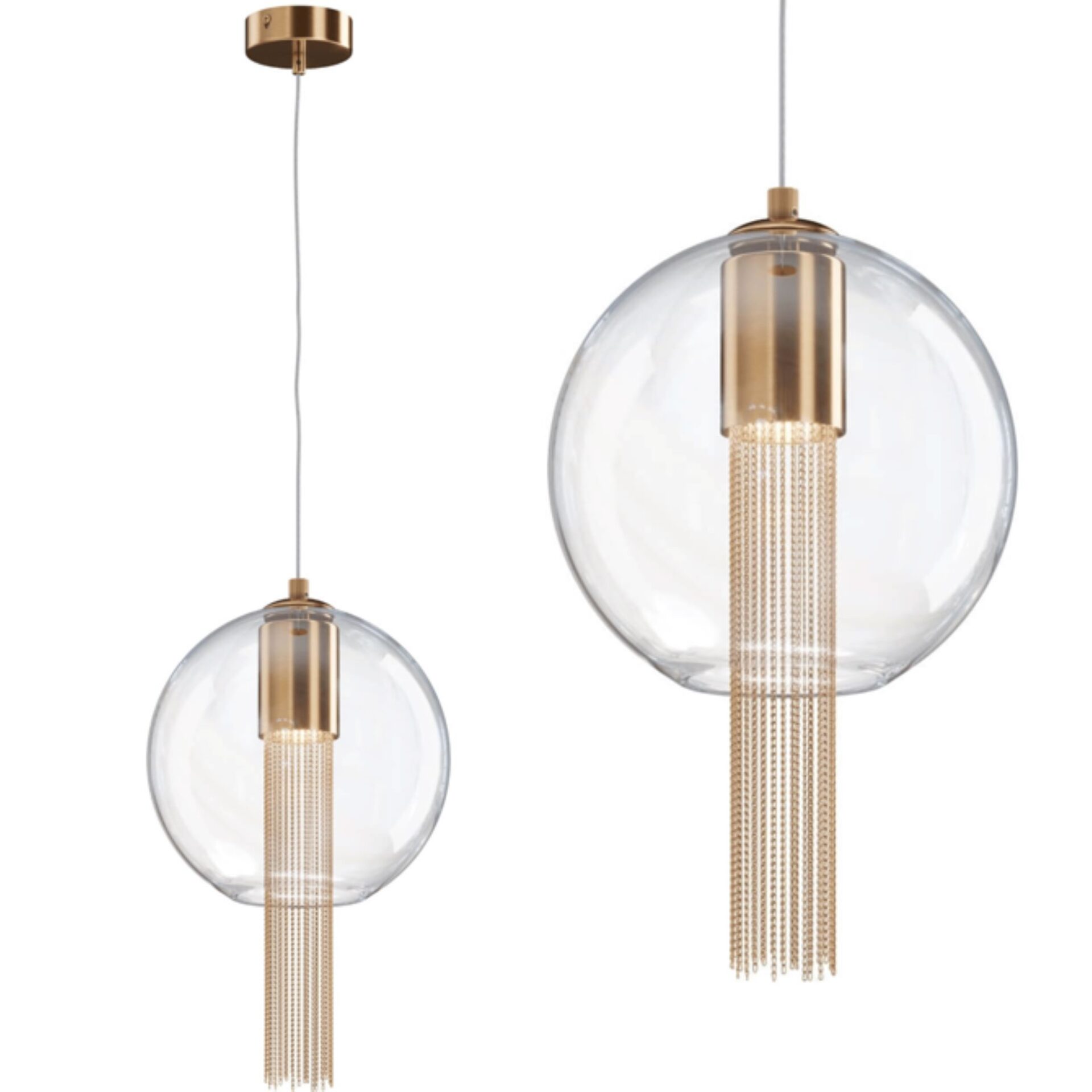 Elegancka Kulista Lampa Wisząca Chain Mosiądz
