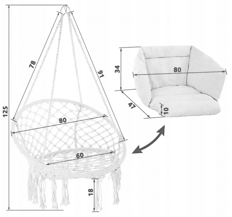 FOTEL WISZĄCY BOCIANIE GNIAZDO HUŚTAWKA PLUS – DOSTĘPNY W TRZECH KOLORACH + PODUSZKI