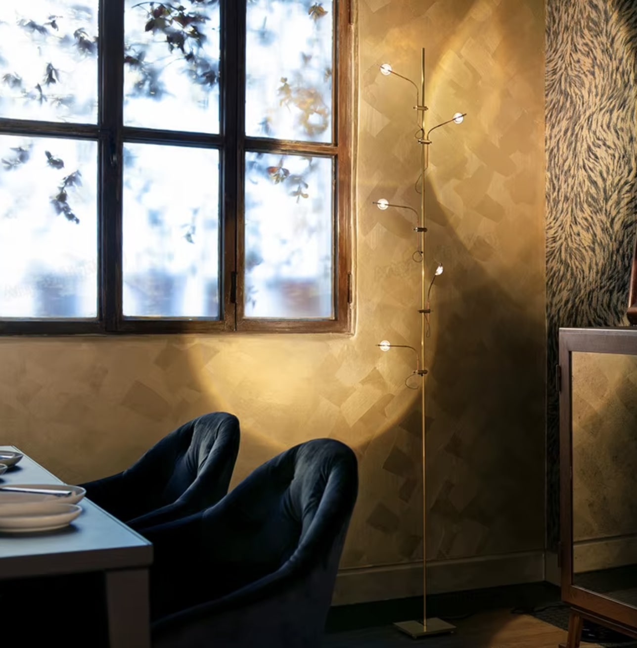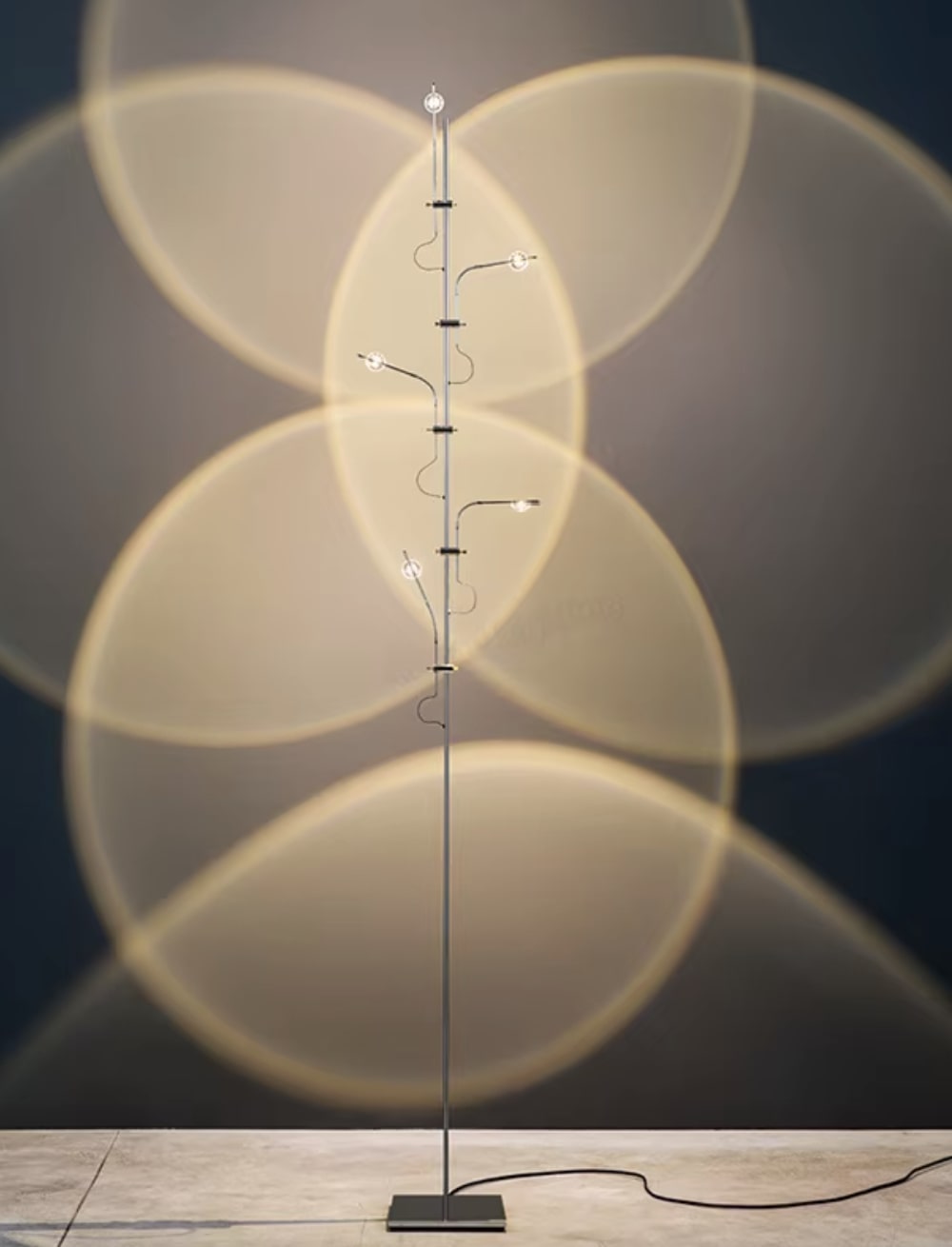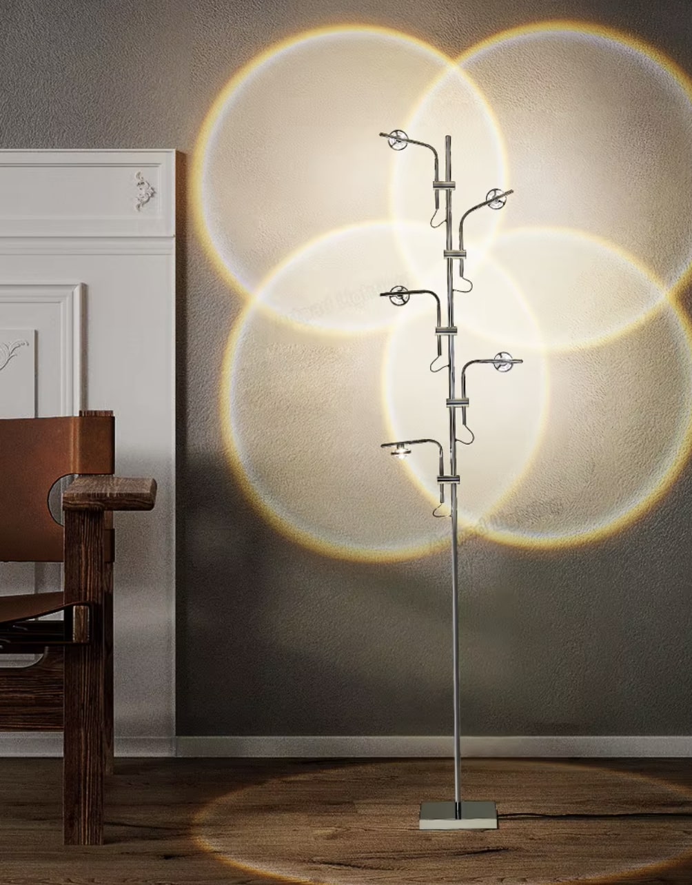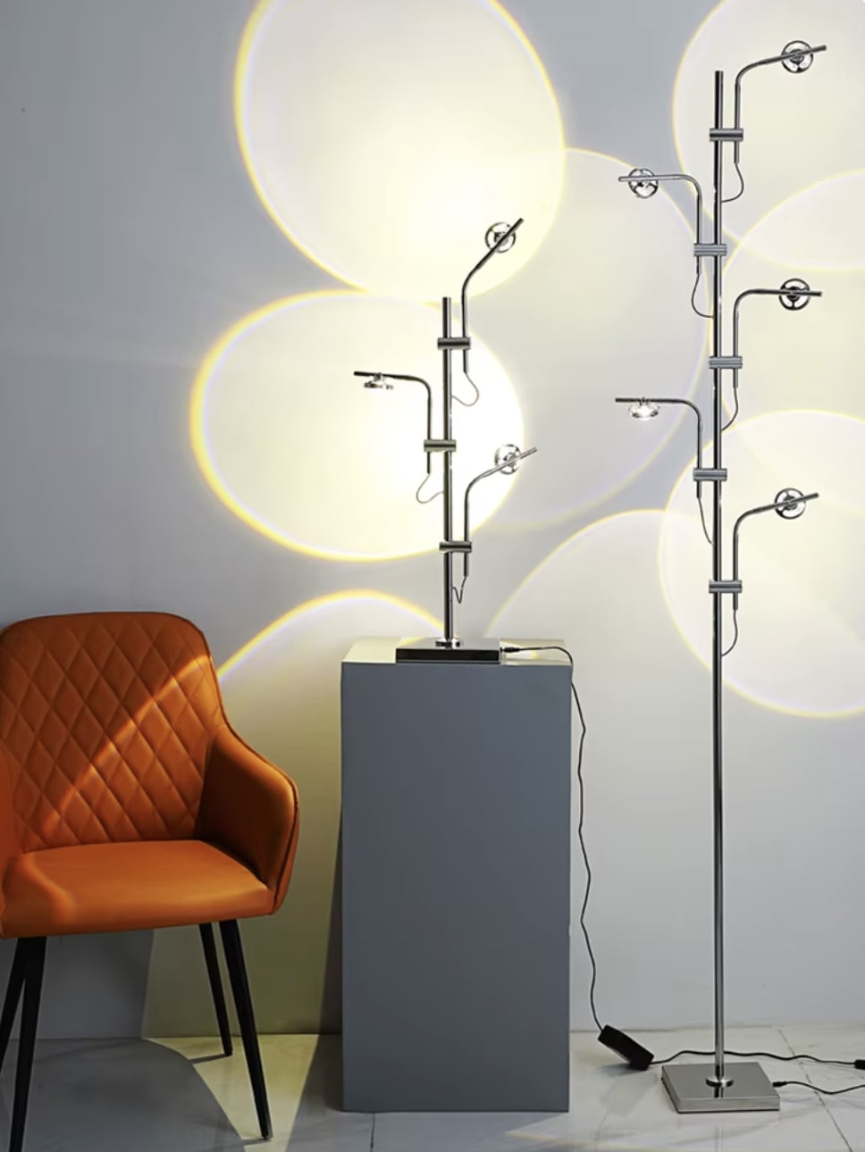 Wyjątkowa lampa stojąca LED o formie przypominającej futurystyczne drzewko świetlne. Smukły, chromowany stelaż z odchodzącymi ramionami zakończonymi reflektorkami LED tworzy niepowtarzalny efekt wizualny. Każde źródło światła można skierować w inną stronę, dzięki czemu lampa pełni funkcję zarówno dekoracyjną, jak i praktyczną. Doskonała do wnętrz urządzonych w stylu nowoczesnym, industrialnym, loftowym lub futurystycznym. Może pełnić funkcję niezależnego oświetlenia, lampy czytelniczej (jedno ramię ustawione niżej) lub designerskiego elementu podkreślającego nowoczesny charakter pomieszczenia.