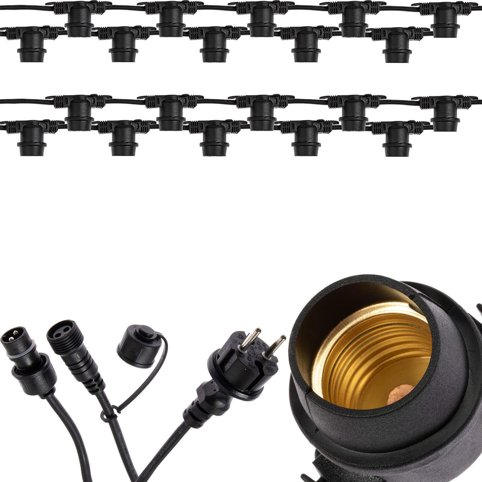 - Elegancka, czarna girlanda ogrodowa na wymienne żarówki E27, wyposażona w 20-metrowy kabel oraz 20 gniazd (brak żarówek w zestawie)