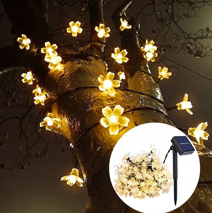 Girlanda Solarna KWIATKI Led łańcuch świetlny z kwiatami, 100 diod LED, 95 m, kwiat wiśni, 8 trybów