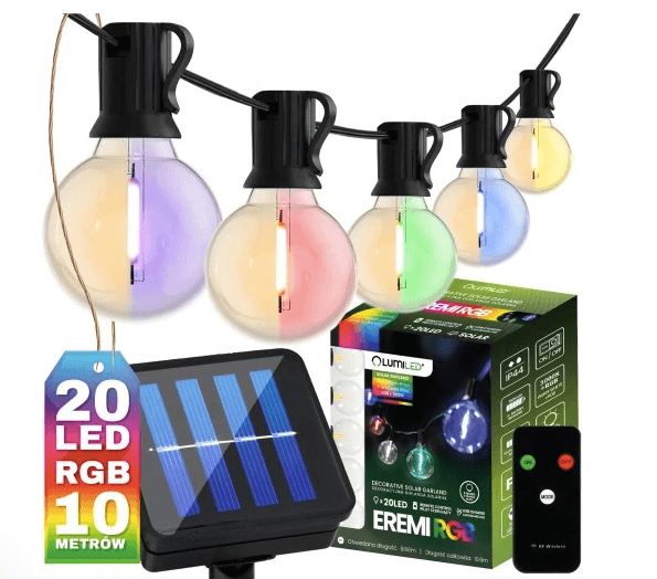 Girlanda Solarna Ogrodowa RGB 20 LED