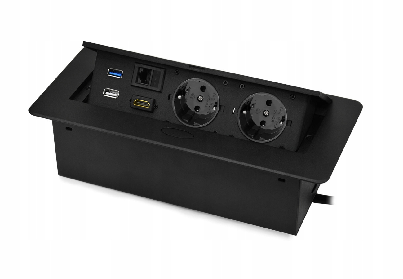 Gniazdo blatowe otwierane chowane nablatowe 3-6 gniazd USB, HDMI, Internet, Mediaport