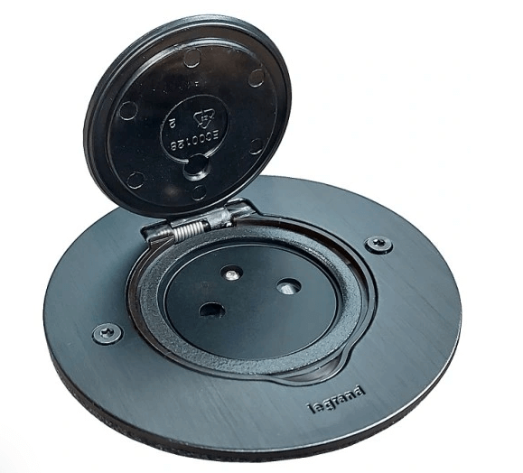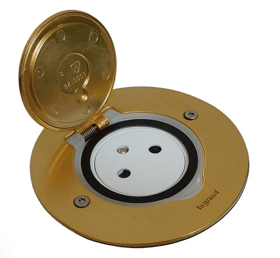 Gniazdo podłogowe wyposażone w pojedyncze gniazdo z uziemieniem.