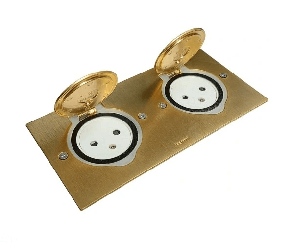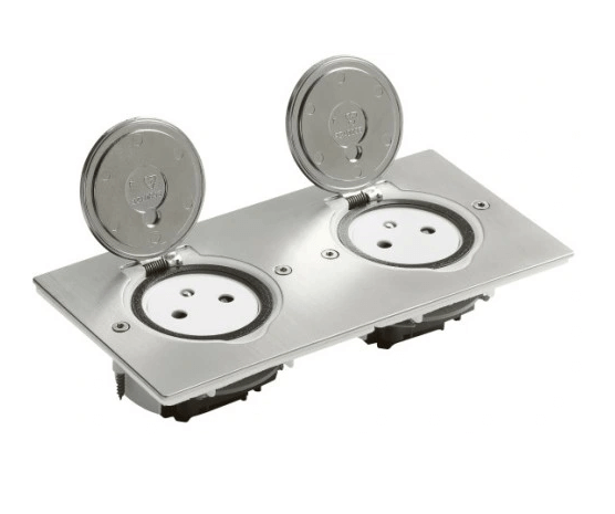 Gniazdo podłogowe wyposażone w 2 gniazda pojedyncze z uziemieniem.