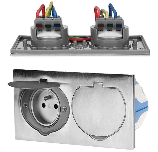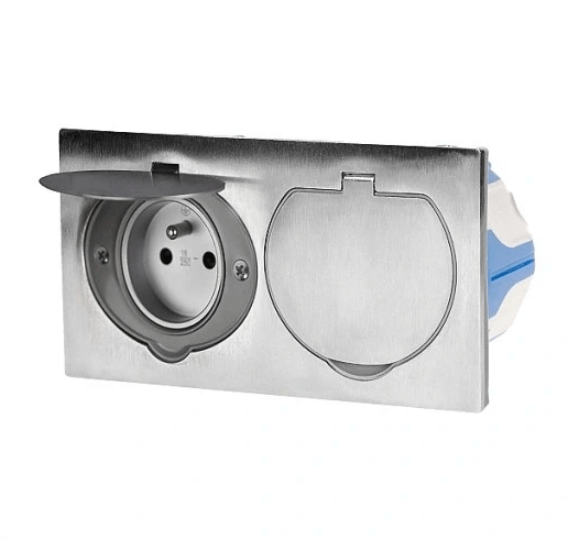 Hermetyczne Gniazdo Podłogowe Podwójne Wpuszczane z Klapkami z Puszką Stal