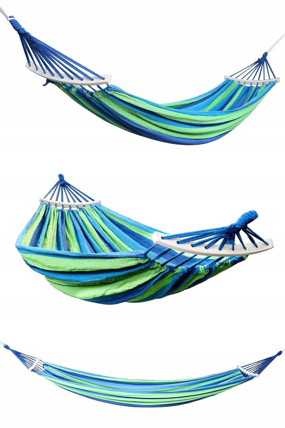 Nowy, wysokiej jakości wytrzymały hamak wiszący do powieszenia na zewnątrz i wewnątrz. Hamak można zamontować zarówno w ogrodzie, na tarasie, działce lub w pomieszczeniach w domu. Jeżeli zawsze marzyłeś o wypoczynku na łonie natury beztrosko leżąc nad ziemią, to ten produkt jest właśnie dla Ciebie. Instalacja jest bardzo prosta – wystarczy przywiązać dwa końce hamaka do drzew, słupków (i tym podobnych stabilnych elementów) i już możesz cieszyć się z wypoczynku.