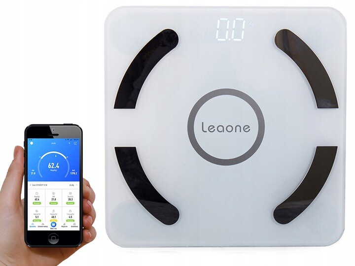 Nowoczesna waga łazienkowa z funkcją bluetooth, pozwala na połączenie się z naszym smartfonem. Dzięki aplikacji Leaone, która jest dostępna w sklepie GOOGLE PLAY lub App Store, możemy kontrolować naszą wagę i kondycję fizyczną.