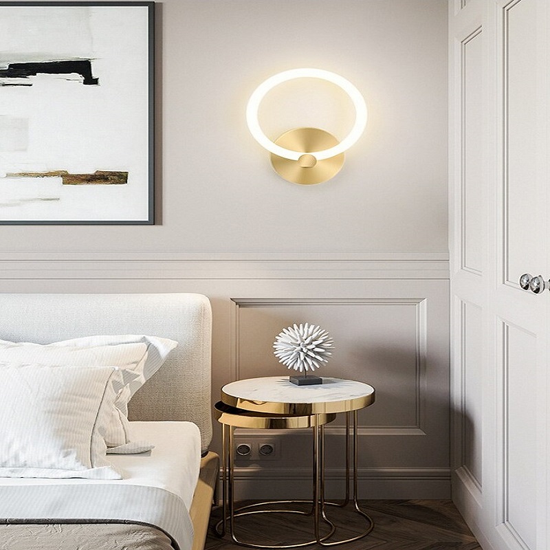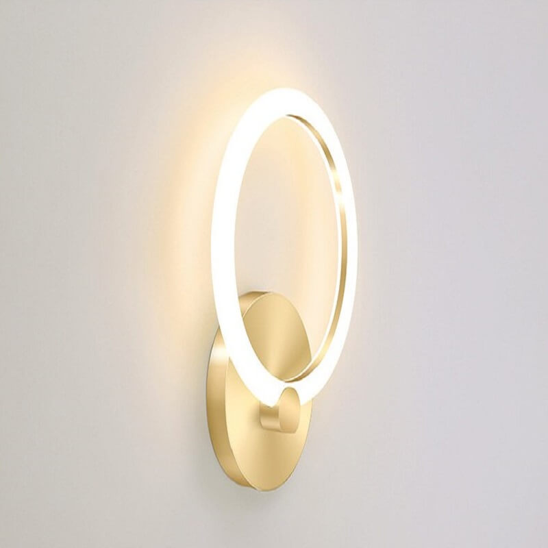 Nowoczesna elegancka lampa ścienna RING. Kinkiet w kolorze złotym idealny do sypialni, salonu, korytarza.
