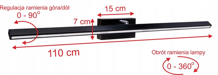 Nowoczesny wysokiej jakości kinkiet led do oświetlenia luster, obrazów, jako oświetlenie łazienkowe. Lampa zabezpieczona przed wilgocią i niekorzystnymi warunkami pracy.
