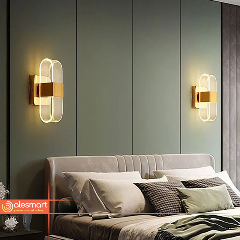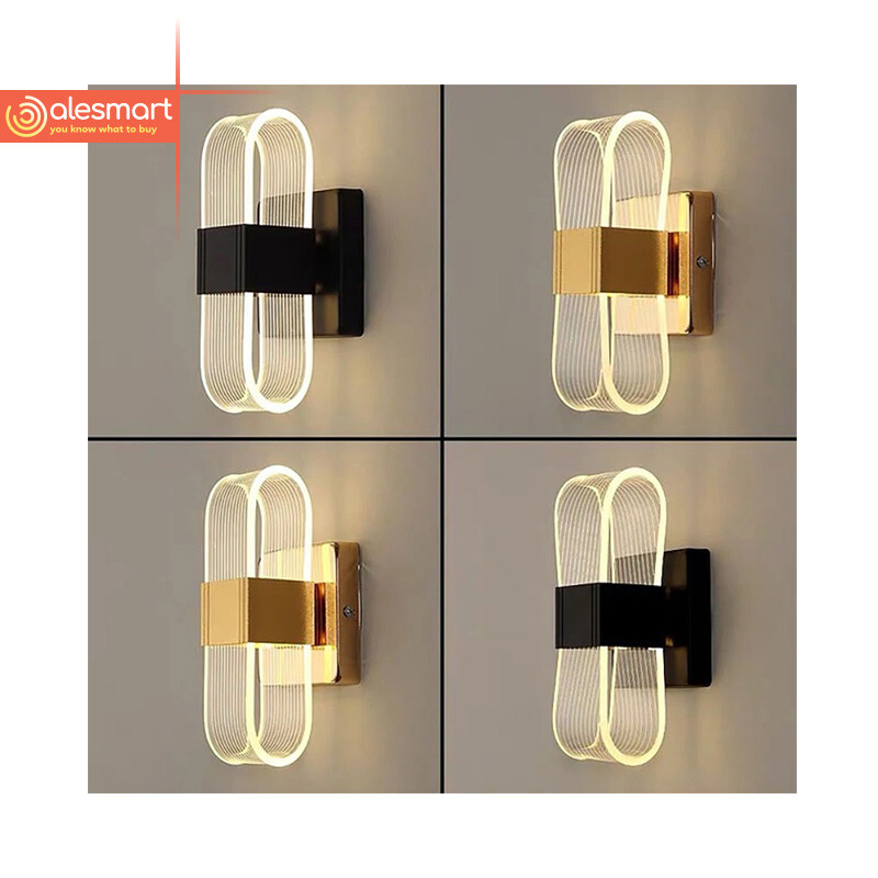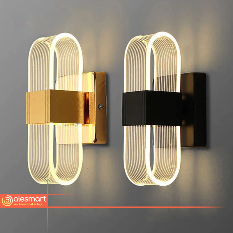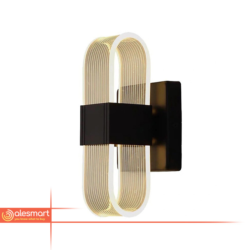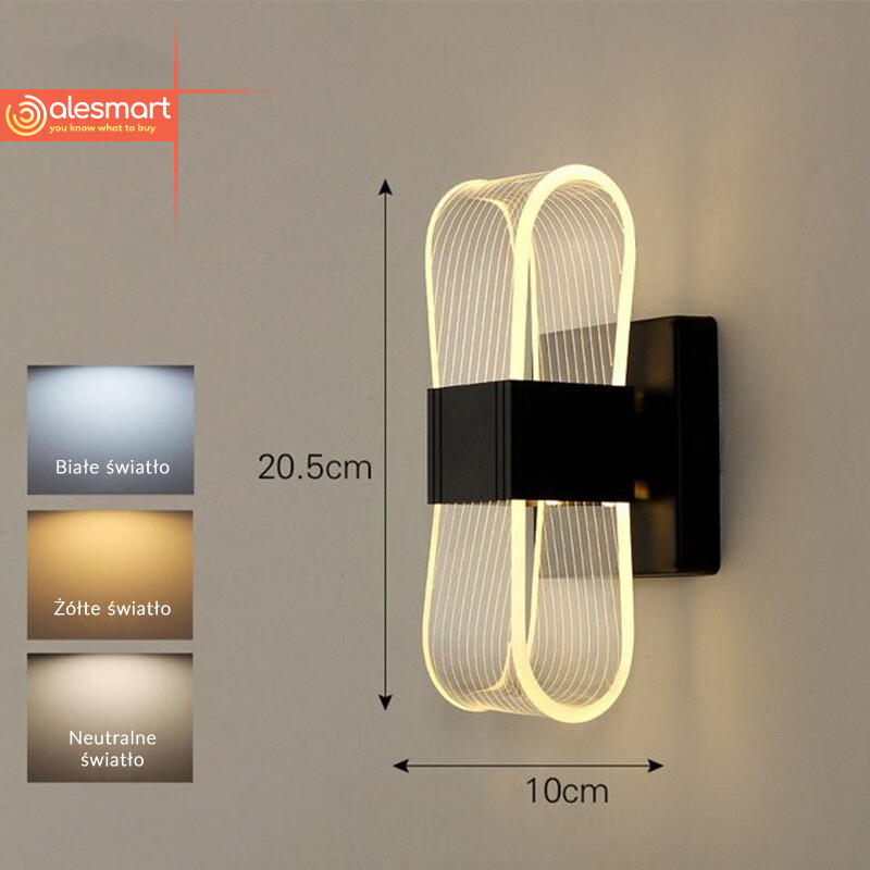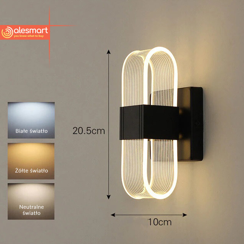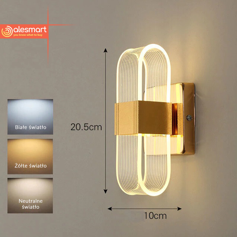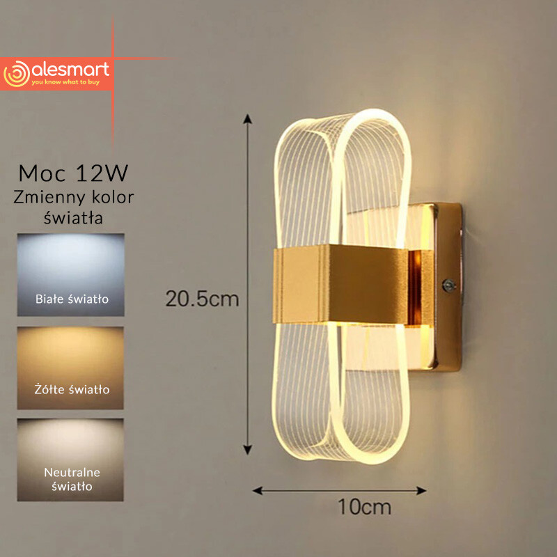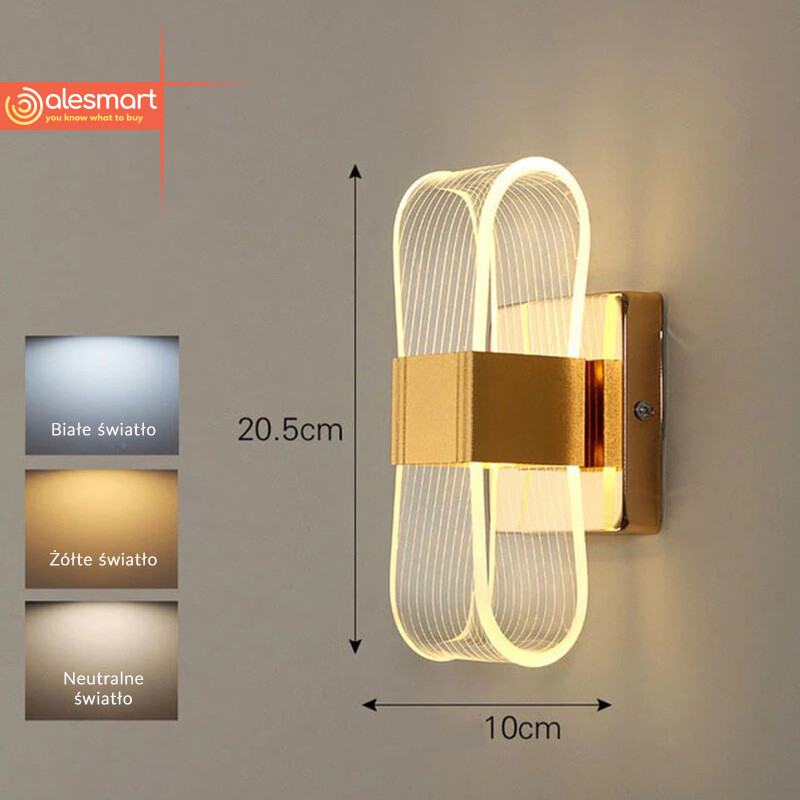 Modernistyczna nowoczesna cieniowana lampa ścienna LED. Kinkiet w kolorze złotym i czarnym idealny do salonu, sypialni, korytarza, jadalni.