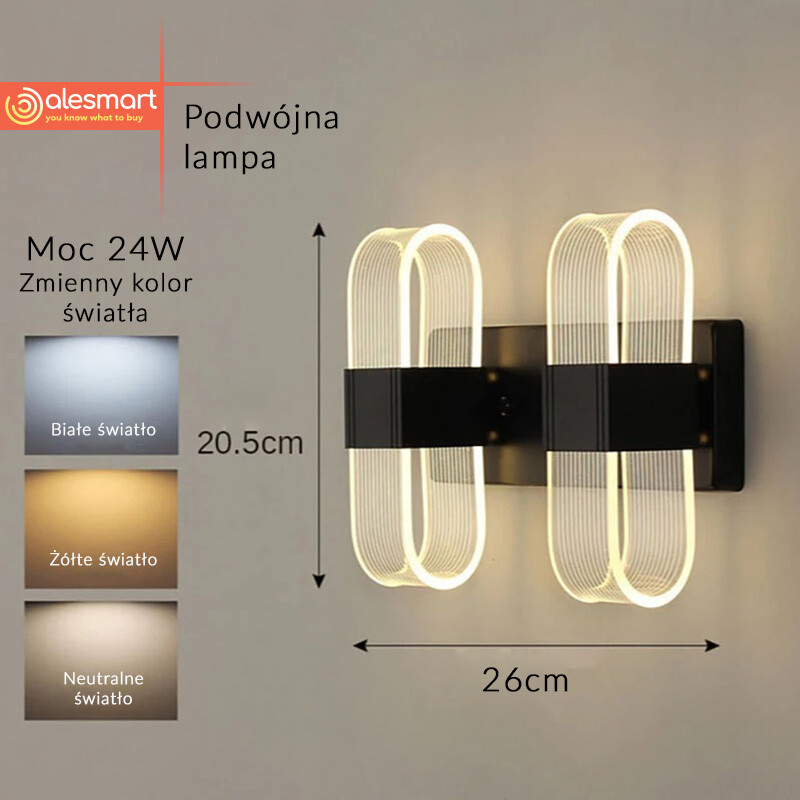 Nowoczesny i oryginalny kinkiet ścienny pojedynczy lub podwójny. Materiał cieniowany akryl daje niespotykany wygląd oprawy. Kinkiet znajdzie zastosowanie w każdym pomieszczeniu, dzięki czemu nabierze ono unikalnego charakteru. Oprawy doskonale prezentują się pojedynczo a także jako instalacje świetlne, podkreślając wyjątkowy klimat i wystrój Twojego salonu czy sypialni.