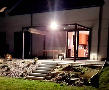 Solarny kinkiet ozdobny SLC-11WL w pełni nadaje się do oświetlenia elewacji budynków, wysokich balustrad i dużych tarasów, jak również ozdobi przyjemnym światłem bramę wjazdową na posesję.
