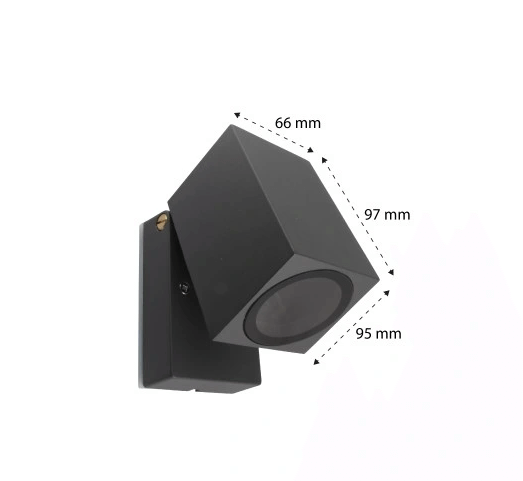 Elegancki kinkiet zewnętrzny z przeznaczeniem na montaż zewnętrzny budynków np. na elewacji domu, garażu, altany. Zastosowanie montażu gniazda GU10 skierowanego ku górze lub dołowi daje efekt łuków świetlnych. Dodatkowo oprawa pozwala na regulację kąta padania światła.