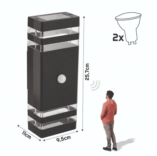 Kinkiet Zewnętrzny Lampa Ogrodowa LED Czujnik Ruchu PIR 2xGU10 Elewacyjna