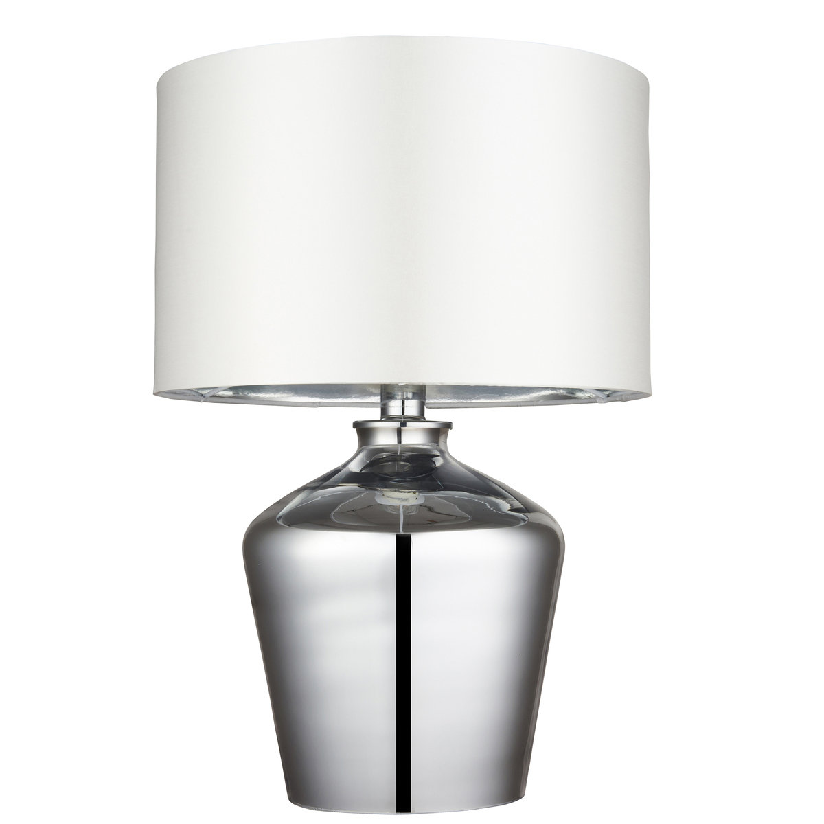 Minimalistyczna Elegancka Lampa Stołowa London Chrom z Abażurem w Kolorze Ecru