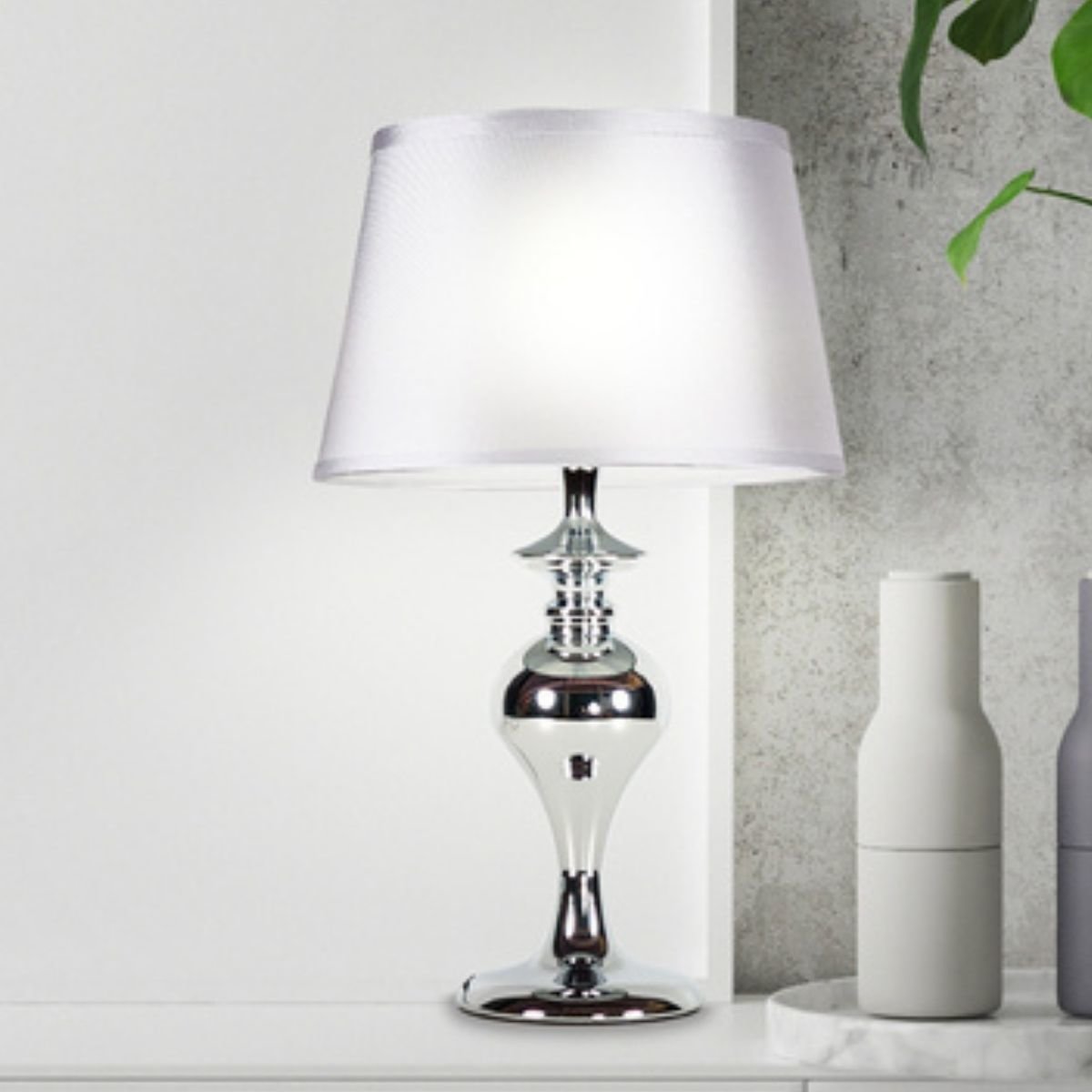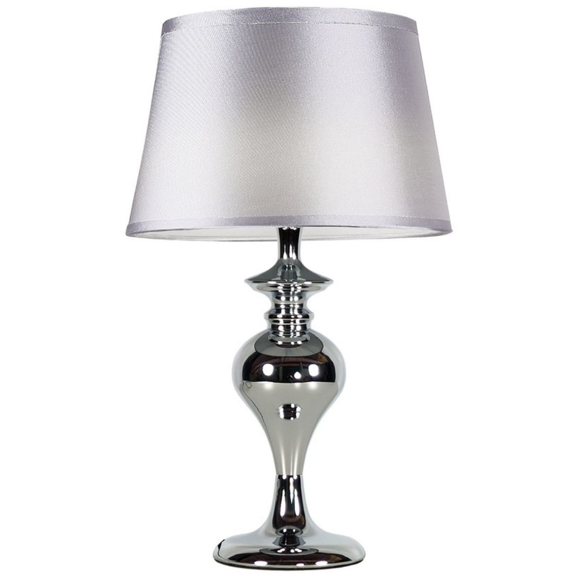 Elegancka Klasyczna Lampa Stołowa Silver Chrom ze Srebrnym Abażurem