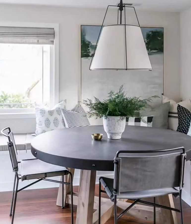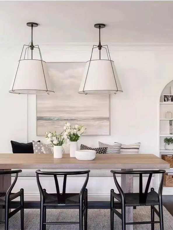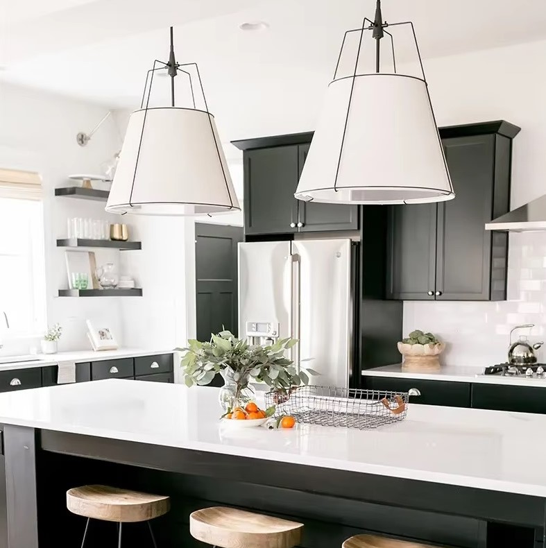 Lampa wisząca w stylu modern farmhouse Clarke Carrie to prosta, aczkolwiek ciekawa lampa wisząca w stylu modern (przypominająca swą formą trapez), na którą składa się jasny abażur „zamknięty” w delikatnej, metalowej ramie. Lampa doskonale wpisuje się w popularny amerykański styl Modern Farmhouse, łączący tradycję z nowoczesnością. Złota i czarna solidna rama w kontrastowym zestawieniu z jasnymi kloszami, tworzy minimalistyczny, ale efektowny design, który sprawdzi się w każdej jadalni lub kuchni. Jasne abażury subtelnie rozpraszają światło, tworząc przyjemną atmosferę podczas wspólnych posiłków. Konstrukcja lampy, z eleganckim wykończeniem i delikatnym detalem, sprawia, że lampa jest nie tylko funkcjonalnym źródłem światła, ale także ozdobą, która podkreśli wyjątkowy charakter wnętrza. Styl modern farmhouse, w którym zaprojektowana została ta lampa, idealnie łączy w sobie elementy wiejskiego uroku z industrialną surowością, co czyni ją doskonałym wyborem do wnętrz, w których stawia się na prostotę i naturalność.