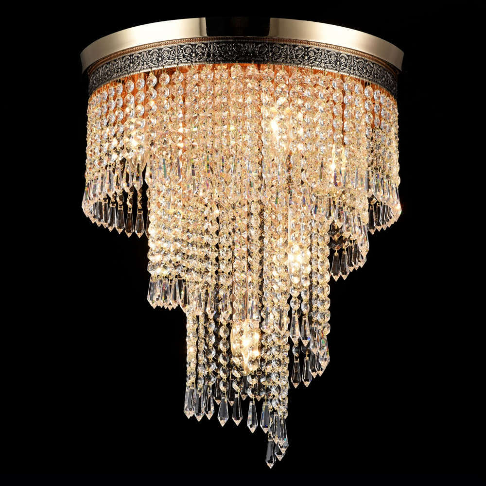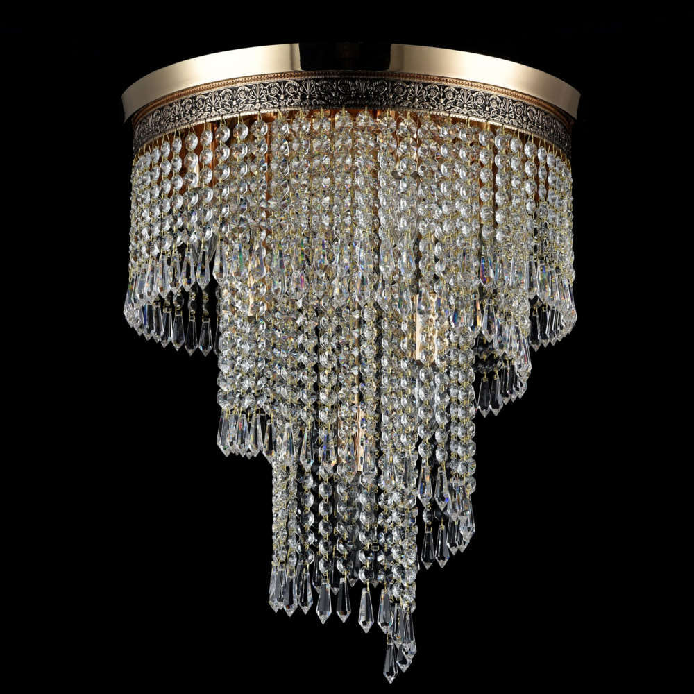 Pałacowa Lampa Sufitowa Cascade Plafon Glamour z Wiszącymi Kryształkami Antyczne Złoto