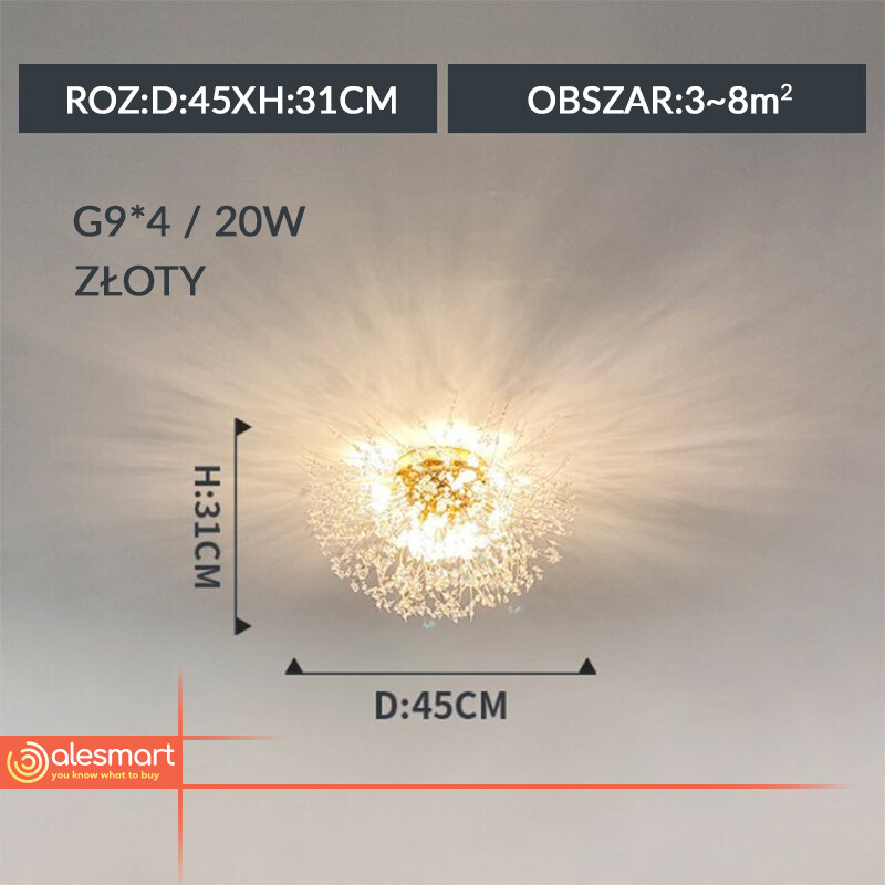 Niepowtarzalna linia wzornicza kryształowych lamp sufitowych dmuchawiec. Lampa opracowana z uwzględnieniem najwyższych oczekiwań klientów ceniących nowoczesny design przy tworzeniu niepowtarzalnych aranżacji wnętrz. Lampa to nie tylko źródło światła, jest to przede wszystkim element dekoracyjny każdego domu. Co więcej, połączenie minimalistycznego designu z prostymi liniami nadaje ponadczasowego klimatu Twojemu wnętrzu.