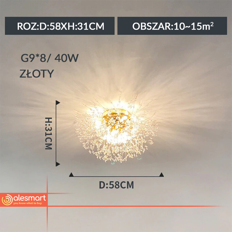 1 opinia dla Kryształowa Lampa Sufitowa Dmuchawiec Plafon Złoty