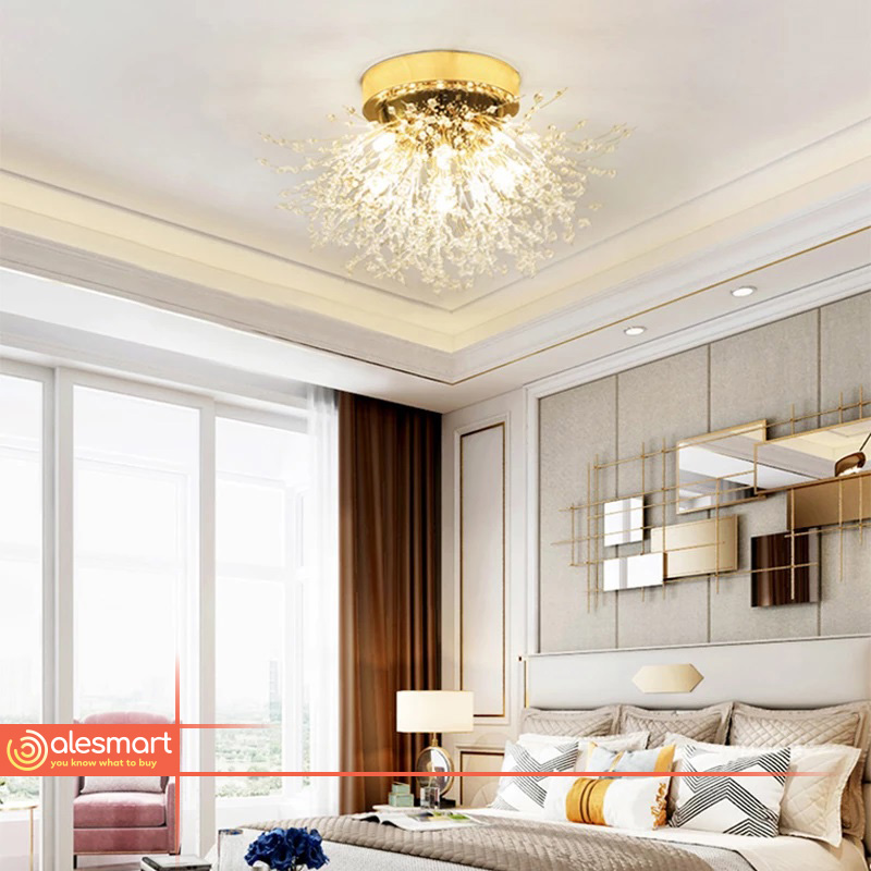 Elegancka kryształowa lampa sufitowa dmuchawiec. Plafon jako ozdoba do restauracji, salonu fryzjerskiego, sypialni.