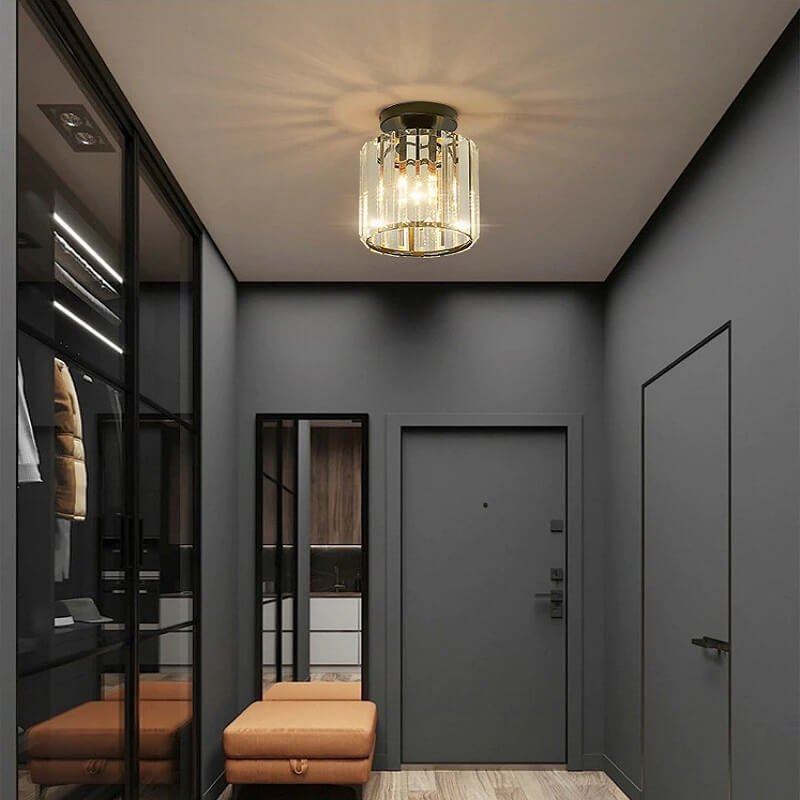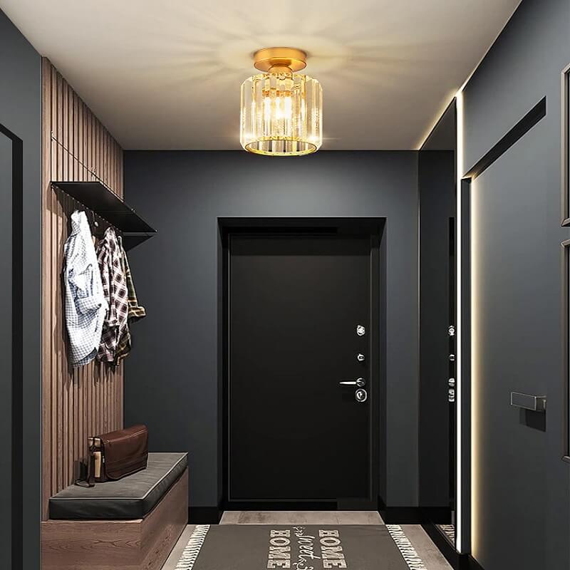 Kryształowa elegancka lampa sufitowa Holdi glamour w kolorze złotym i czarnym idealna do sypialni, salonu, kuchni, korytarza.