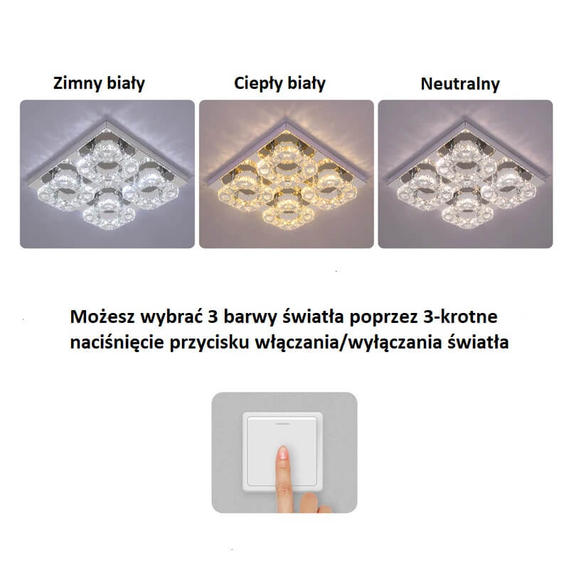 - Temperatura barwowa: regulowana 2700K-5700K (do wyboru 3 rodzaje barwy światła poprzez 3-krotne naciśnięcie włącznika światła).