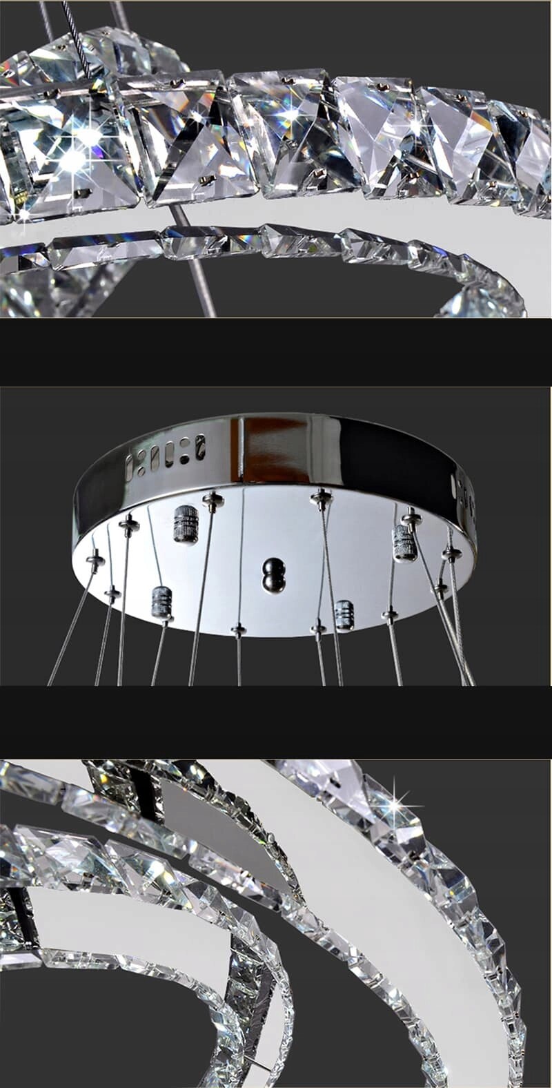 Kryształowa lampa wisząca Circle. Luksusowy żyrandol RING o średnicy 25/35/49 cm w kolorze srebrnym w kształcie trójkąta.