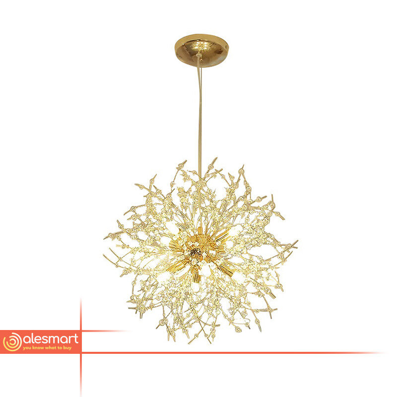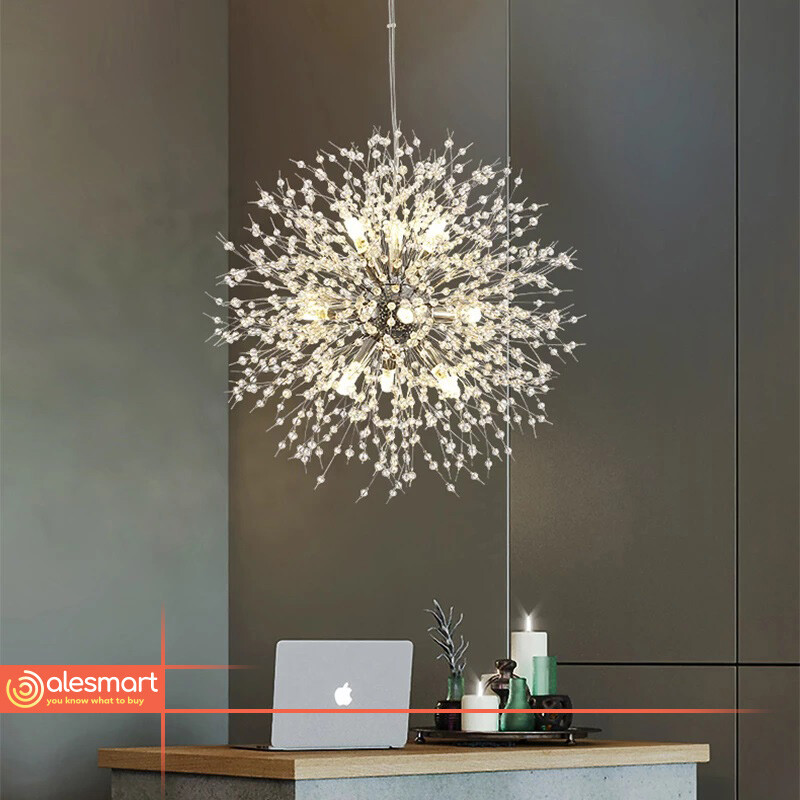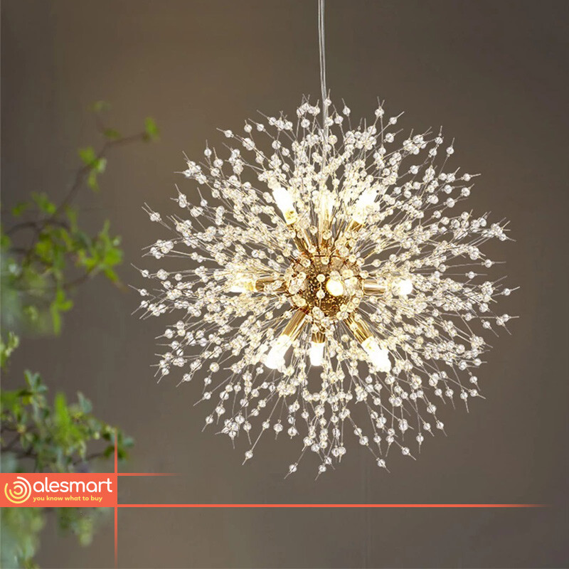 Elegancka kryształowa lampa wisząca dmuchawiec. Ozdoba do restauracji, salonu fryzjerskiego, sypialni.
