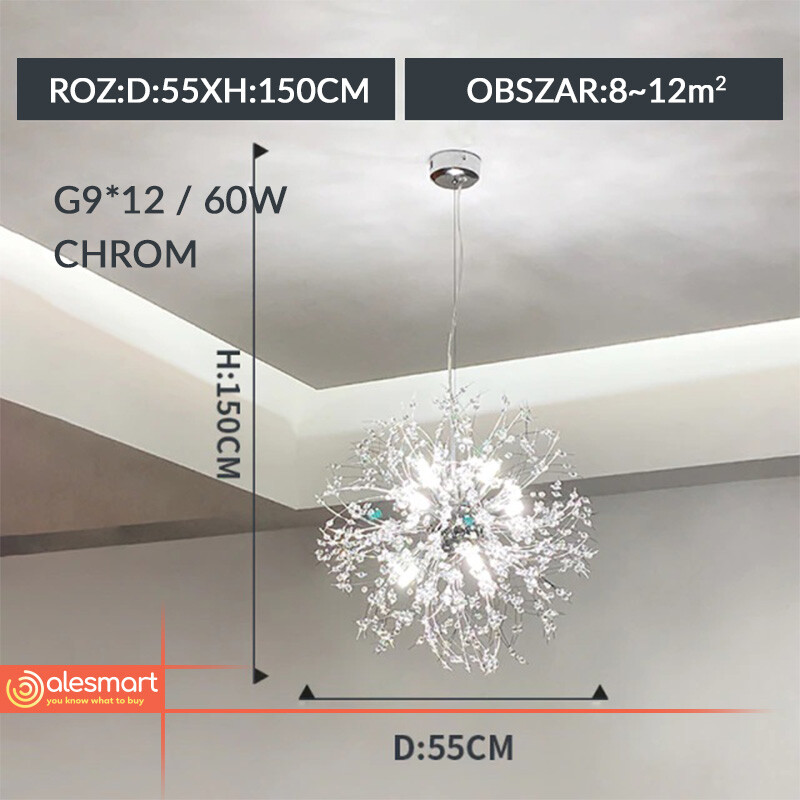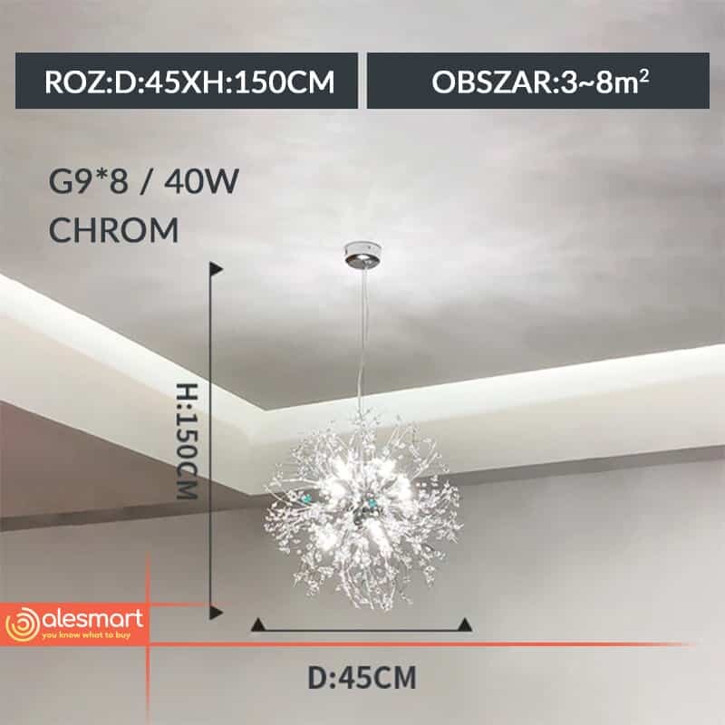 Niepowtarzalna linia wzornicza kryształowych lamp wiszących dmuchawiec została opracowana z uwzględnieniem najwyższych oczekiwań klientów ceniących nowoczesny design przy tworzeniu niepowtarzalnych aranżacji wnętrz. Lampa to nie tylko źródło światła, jest to przede wszystkim element dekoracyjny każdego domu. Co więcej, połączenie minimalistycznego designu z prostymi liniami, nadaje ponadczasowego klimat Twojemu wnętrzu.