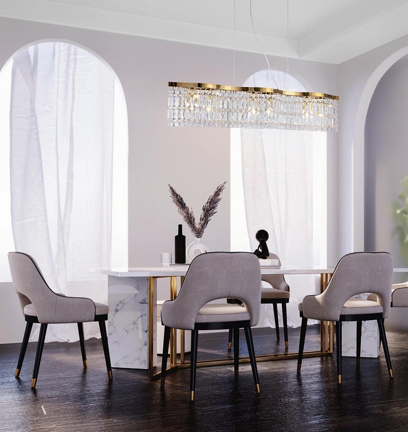 Kryształowa lampa wisząca Dune glamour złota łączy w sobie wyjątkowy i ponadczasowy design w najlepszym wydaniu, co stwarza szereg możliwości aranżacji przestrzeni w Twoim domu. Oświetlenie z łatwością wkomponuje się w pomieszczenia o klasycznym i nowoczesnym klimacie. Lampa cechuje się funkcjonalnością, a jej uniwersalna forma sprawi, że jej blask światła wprowadzi komfortową i przytulną atmosferę sprzyjającą spotkaniom towarzyskim, jak i odpręży po dniu spędzonym poza domem w spokojne wieczory z najbliższymi. Model Dune jest wykonany z praktycznych i trwałych materiałów, gwarantując jego użytkownikom radość i zadowolenie na wiele lat. Gustowne połączenie kolorów złoty oraz przezroczysty lampy sprawi, że lampa sprawdzi się zarówno w jasnych, jak i ciemnych wnętrzach. Materiały zastosowane w lampie to metal oraz kryształ dzięki temu będzie ona łatwa w pielęgnacji i w utrzymaniu czystości.