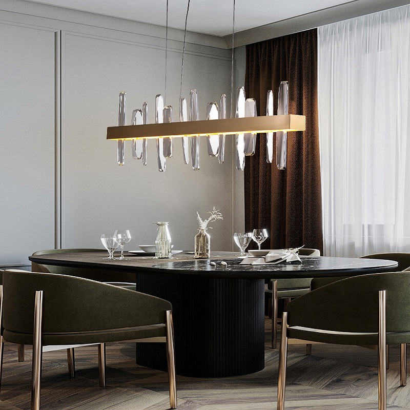 Luksusowy żyrandol kryształowy Glacier w kolorze złoty mosiądz LED, podłużny lub owalny, do salonu, do jadalni, do hotelu.