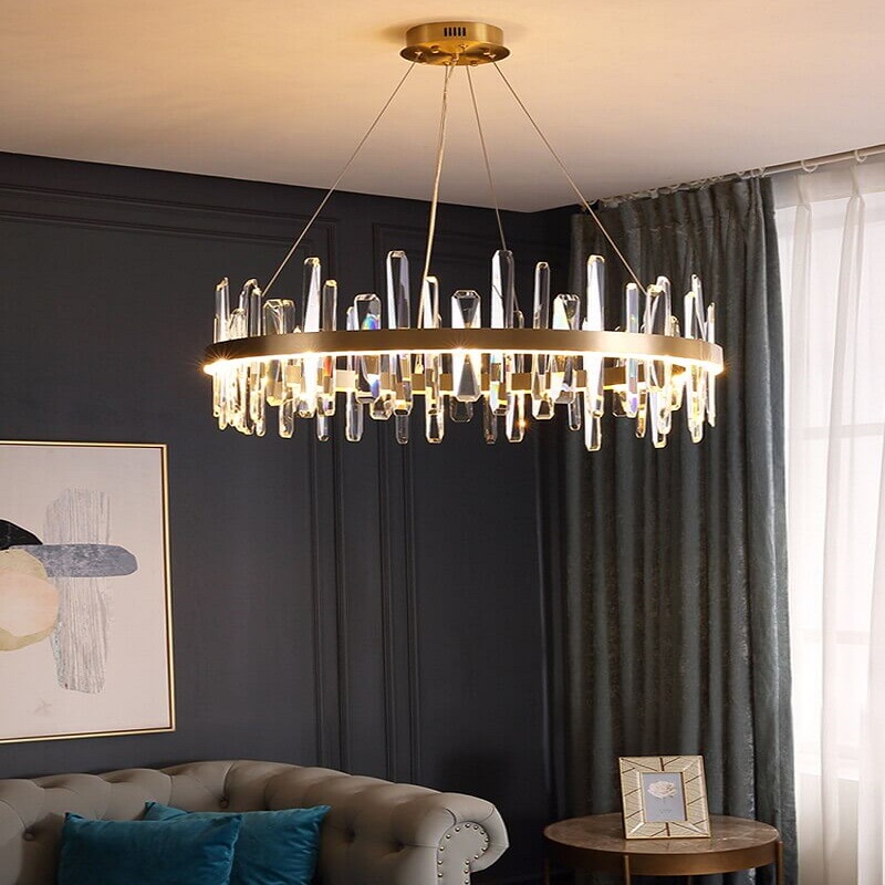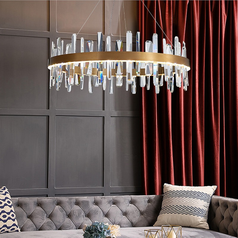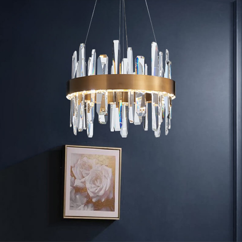 Kryształowa Lampa Wisząca Glacier Żyrandol Złoty Mosiądz LED