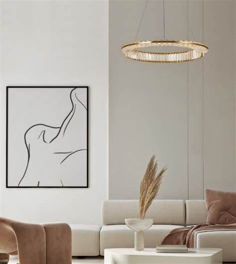 Nowoczesna Kryształowa Lampa Wisząca Krone Żyrandol Glamour Złoty Pierścień Ring LED 4000K