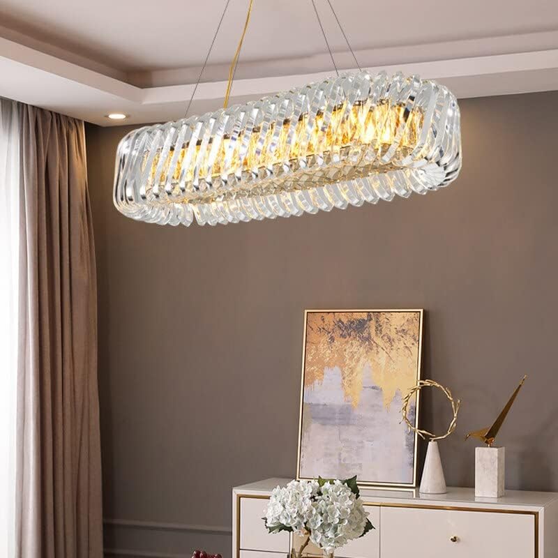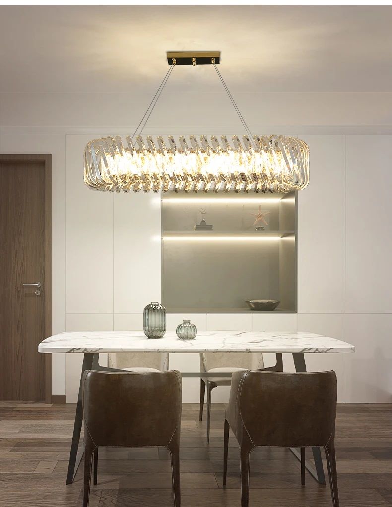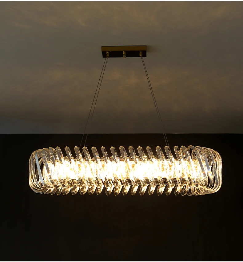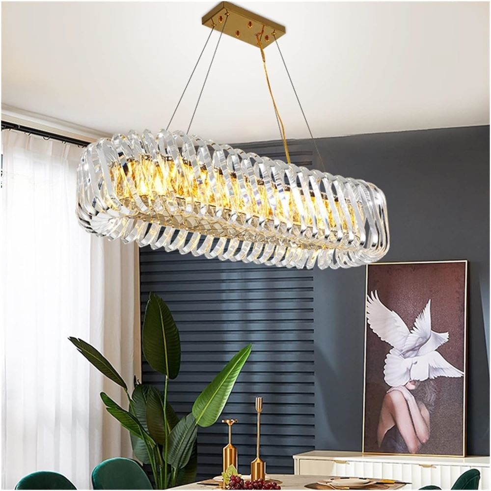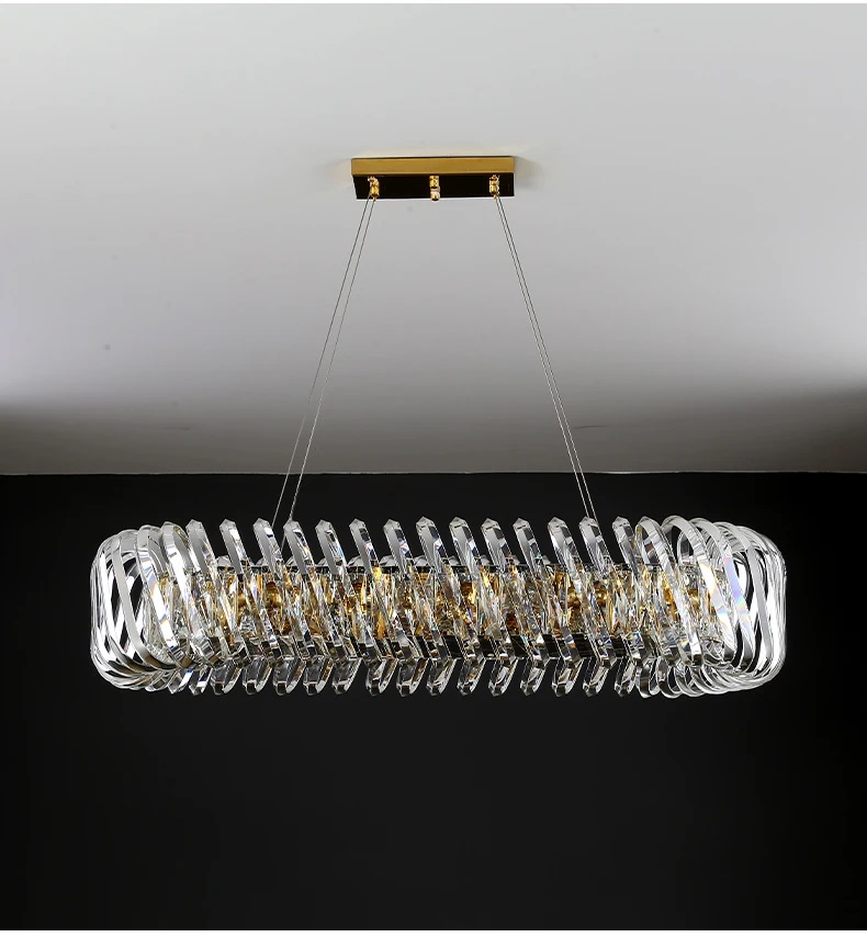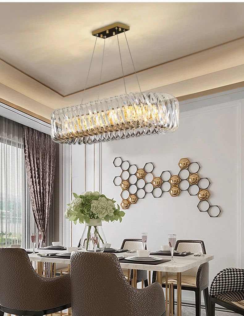 Nowoczesna Ekskluzywna Kryształowa Lampa Wisząca Berella Żyrandol Glamour w Kolorze Złotym. Lampa podłużna nad stół.