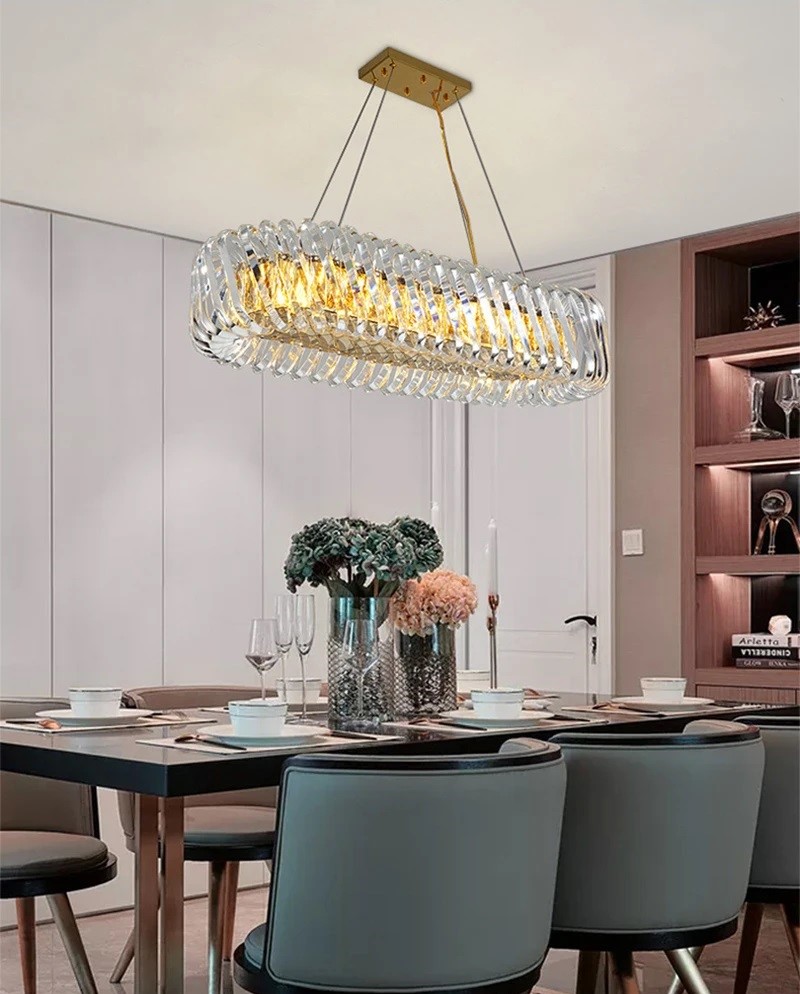 Kryształowa Podłużna Lampa Wisząca Berella Żyrandol Glamour